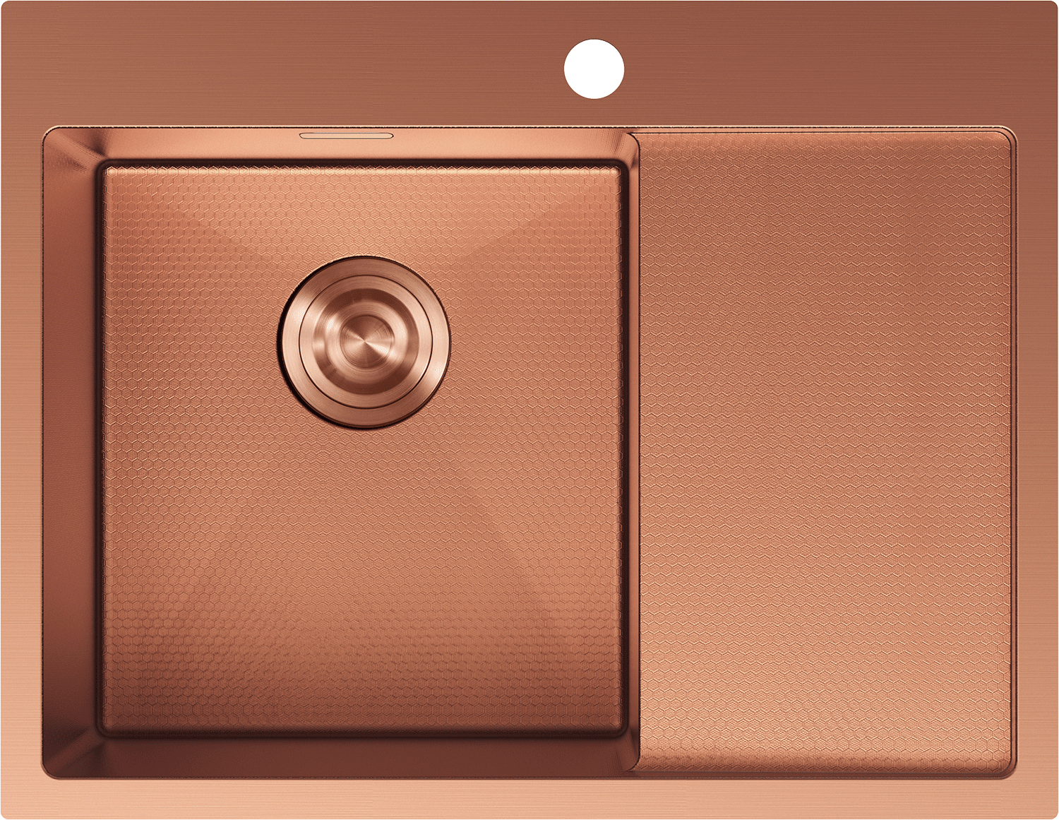 Mexen Exar tērauda izlietne ar 1 nodalījumu un žāvētāju, kreisā 620 x 480 mm, vara HC - 6431621005L-65HC