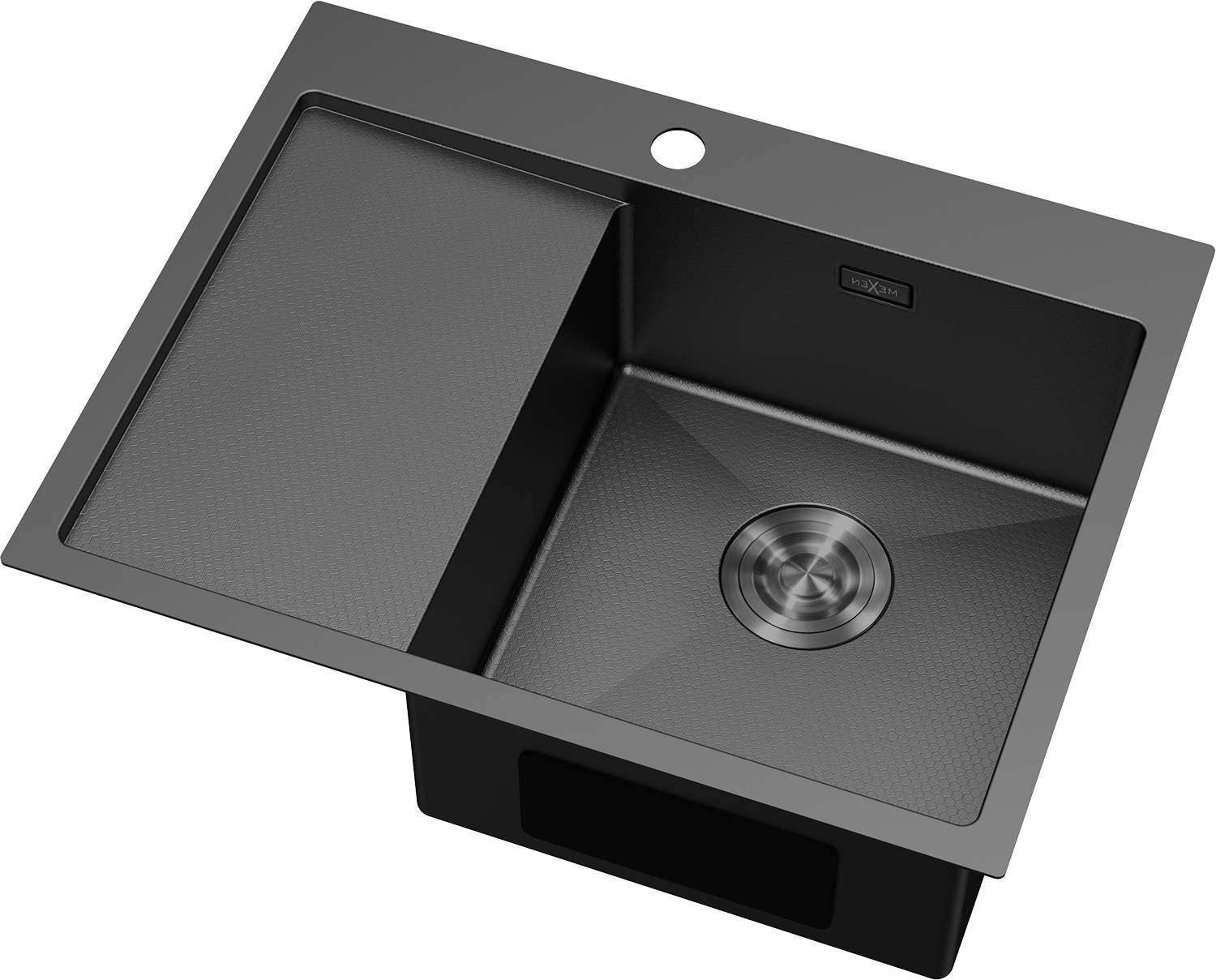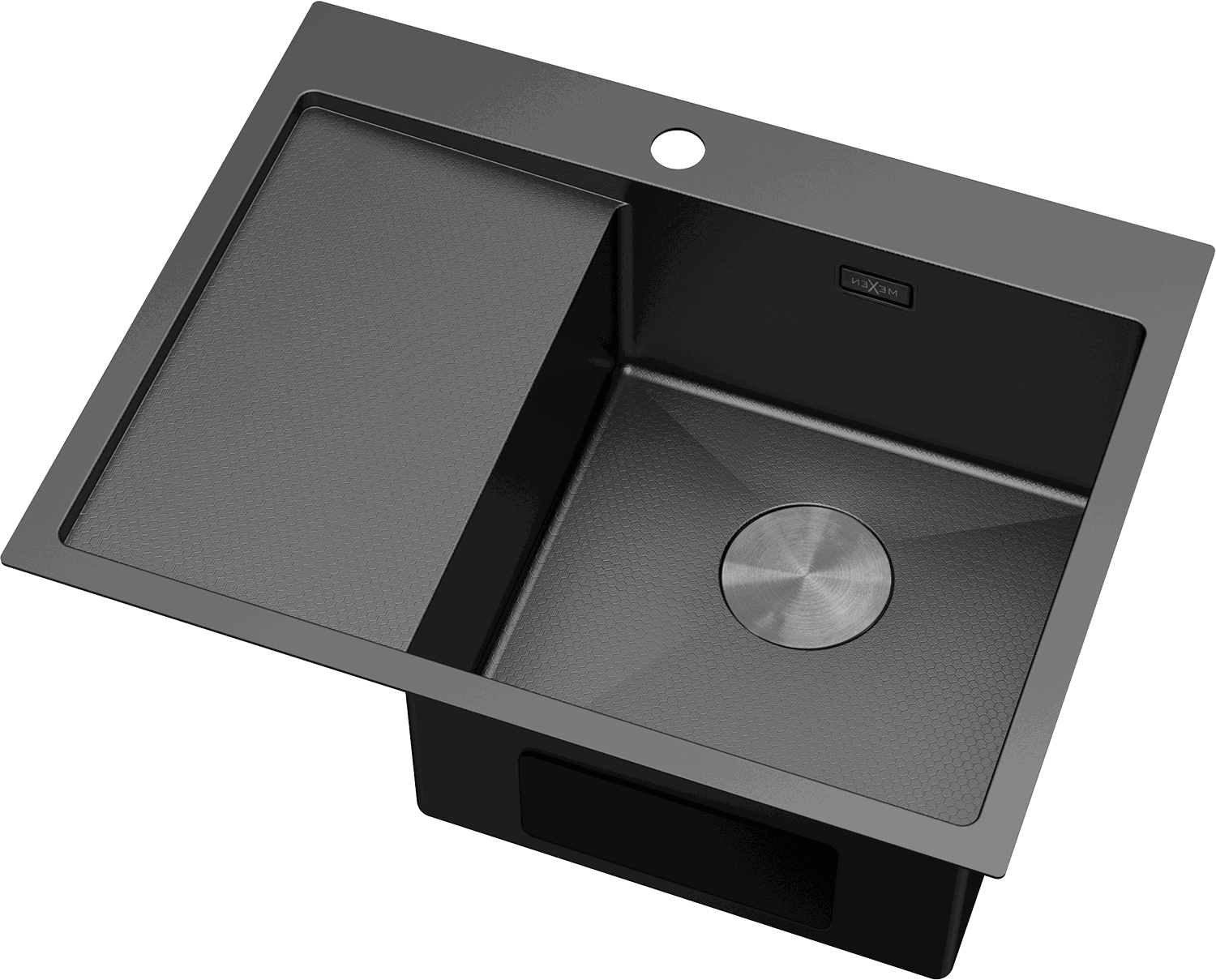 Mexen Exar tērauda izlietne ar vienu nodalījumu un noteces zonu, labā puse, 620 x 480 mm, melna HC - 6432621005P-70HC