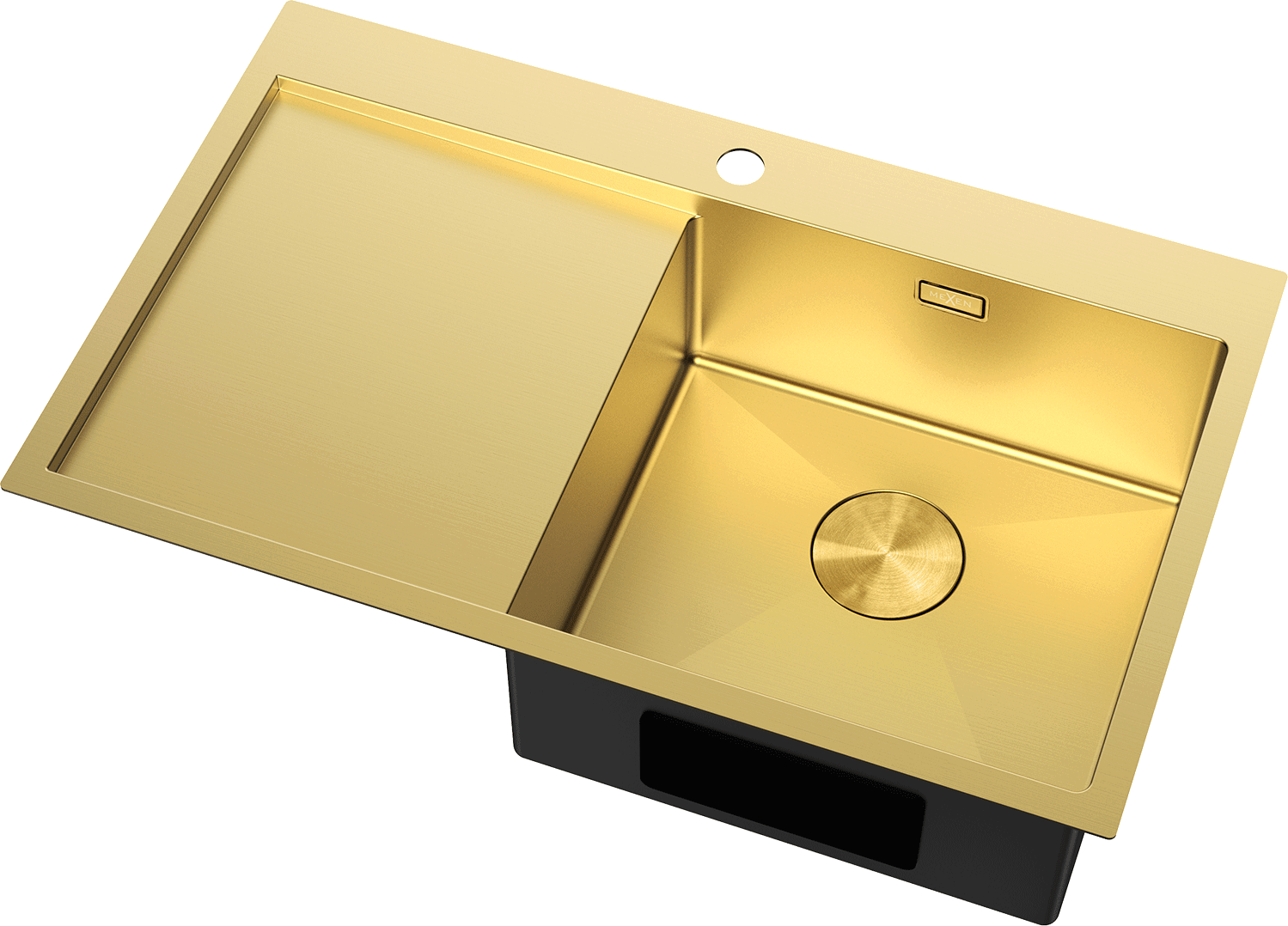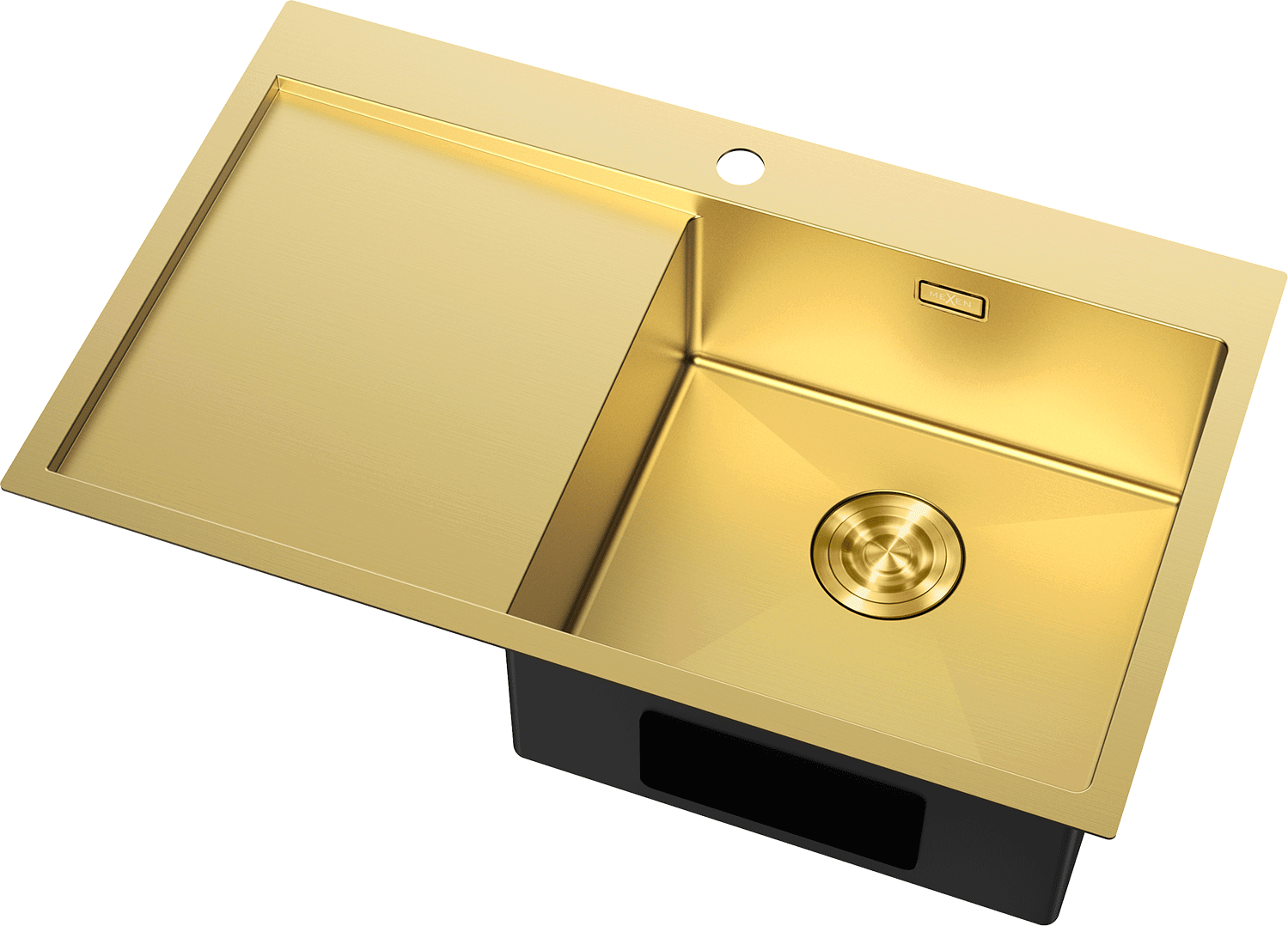 Mexen Exar tērauda izlietne ar vienu nodalījumu un notecējumu, labā puse, 780 x 480 mm, zelta - 6434781010P-55