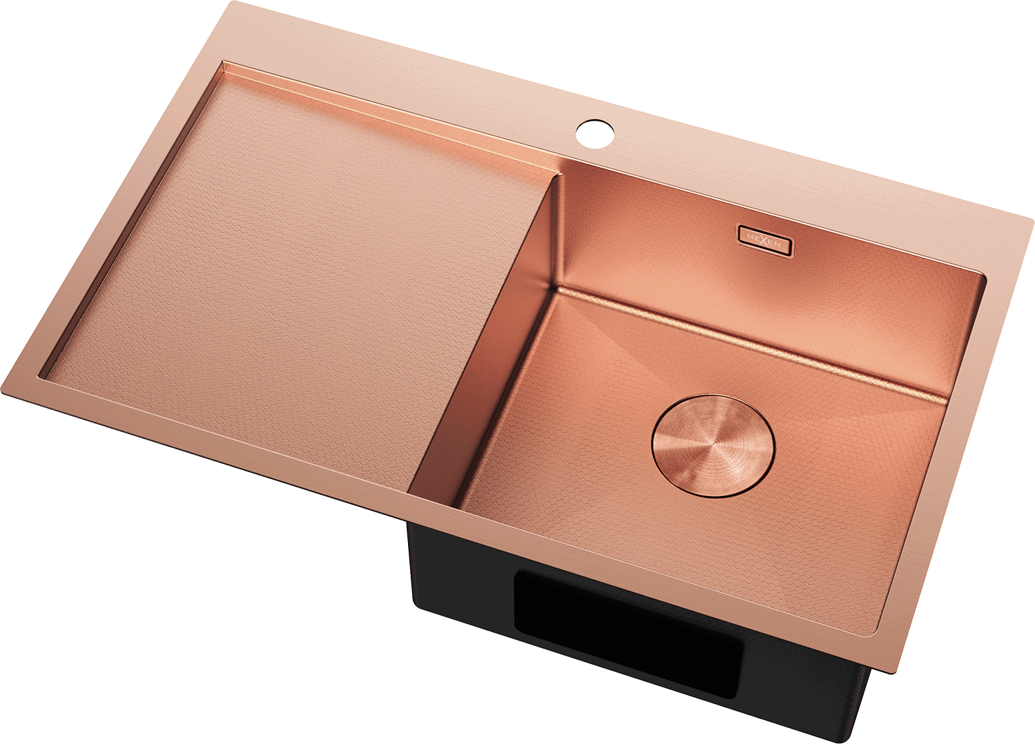 Mexen Exar tērauda izlietne ar vienu nodalījumu un notekplati, labā, 780 x 480 mm, varš HC - 6434781010P-65HC