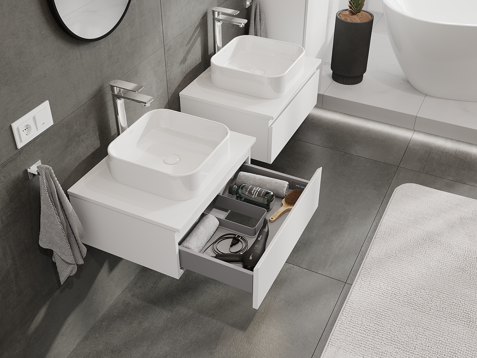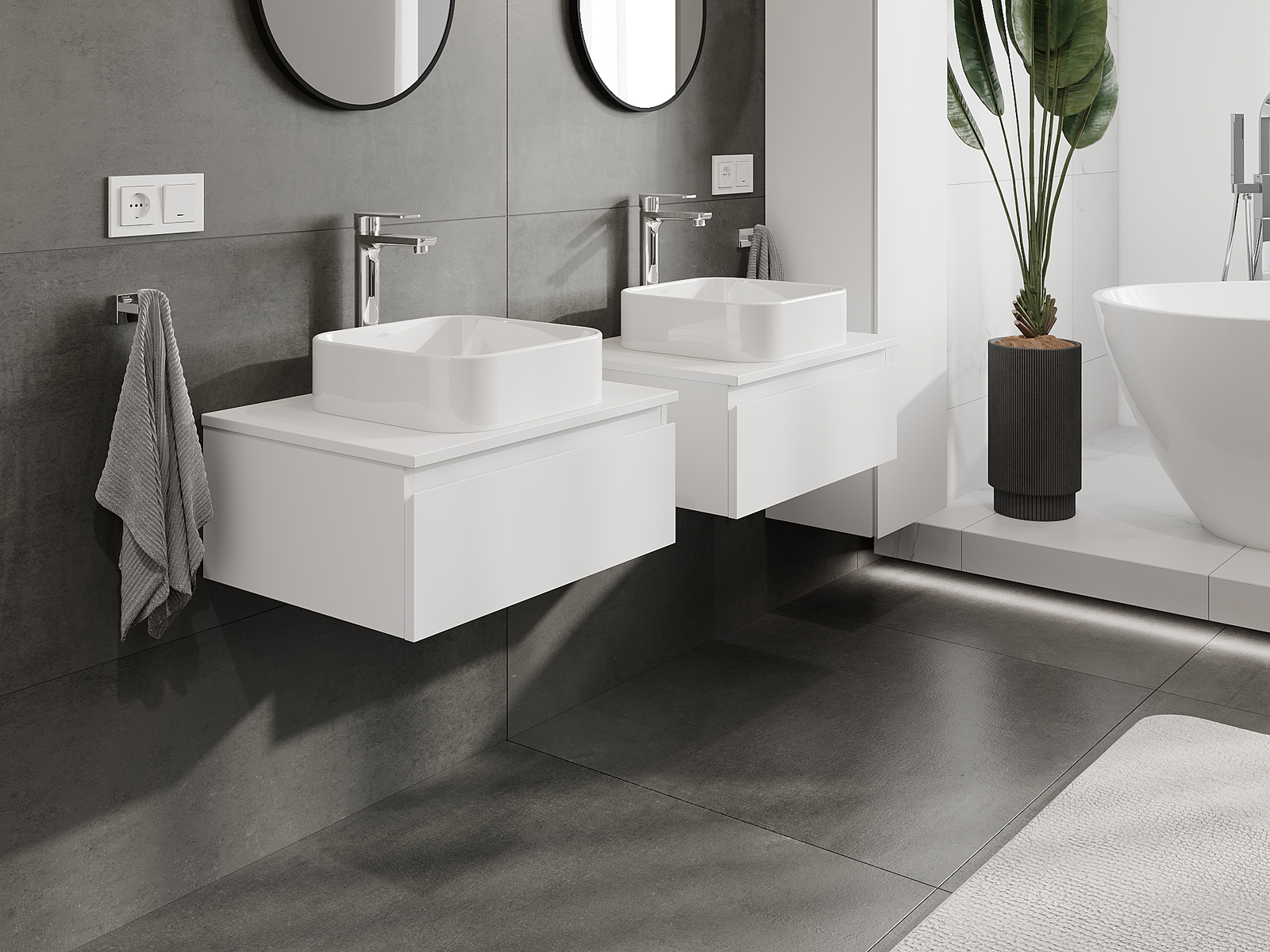 Mūsu modulārās vannas istabas mēbeles var savstarpēji kombinēt dažādās krāsu konfigurācijās, ļaujot pilnīgu personalizāciju. Var izvēlēties gan izskatu, gan atsevišķu elementu funkcijas, kas ļauj pielāgot mēbeles savām stilistiskajām un lietotāju vēlmēm.