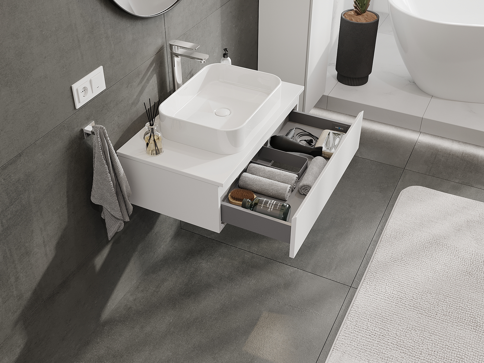 Mexen Orio vannas istabas skapītis zem izlietnes 80 cm, 1 atvilktne, balts matēts - 91A10-08023-1-BF01