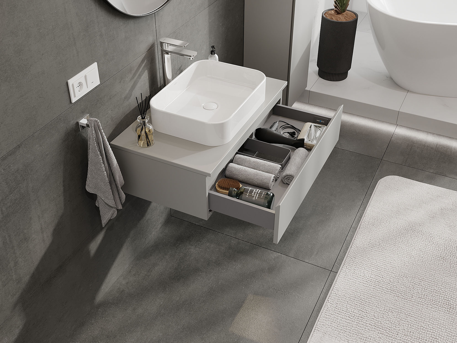 Mexen Orio vannas istabas skapītis zem izlietnes 80 cm, 1 atvilktne, pelēks matēts - 91A10-08023-1-BF62