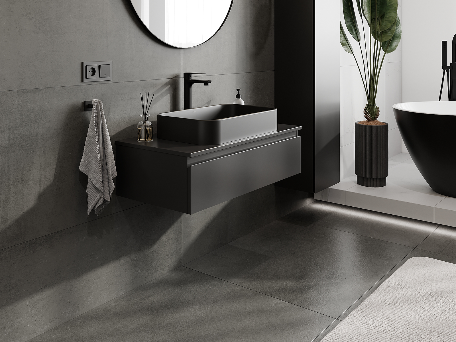 Mexen Orio vannas istabas skapītis zem izlietnes 90 cm, 1 atvilktne, melns matēts - 91A10-09023-1-BF71