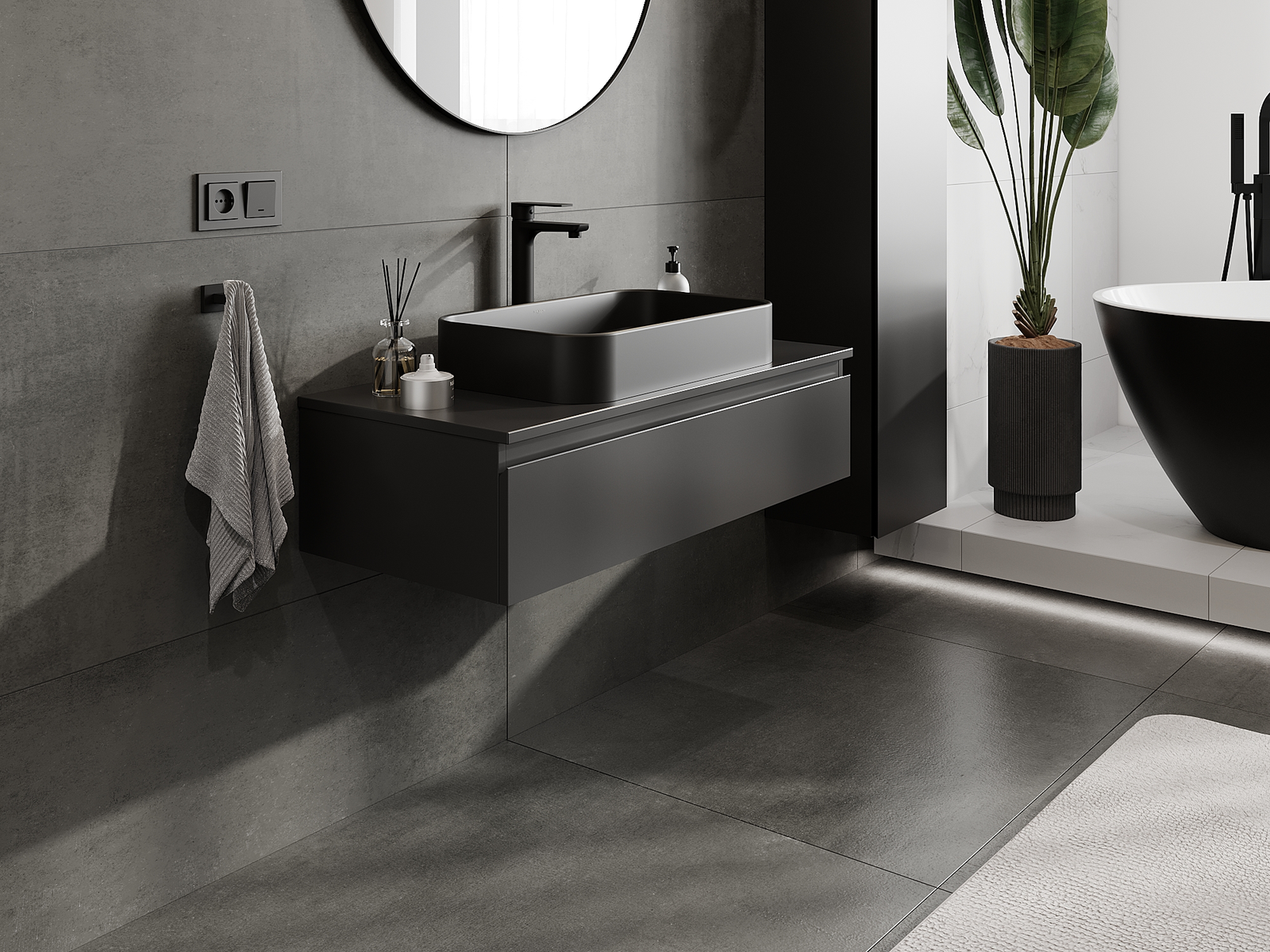 Mexen Orio vannas istabas skapītis zem izlietnes 100 cm, 1 atvilktne, melns matēts - 91A10-10023-1-BF71