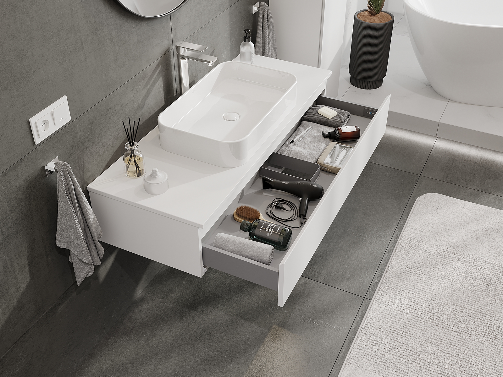 Mexen Orio vannas istabas skapītis zem izlietnes 120 cm, 1 atvilktne, balts matēts - 91A10-12023-1-BF01