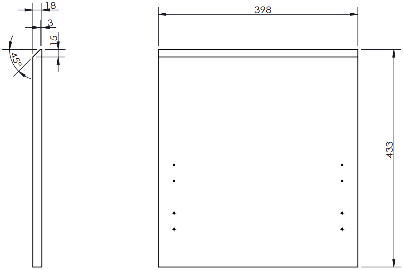 Priekšpuses materiāls: Lakota MDF plāksne
