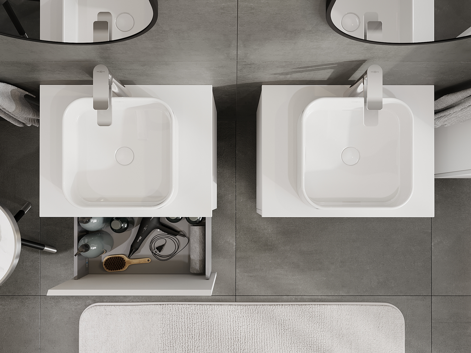 Mūsu modulārās vannas istabas mēbeles var savstarpēji kombinēt dažādās krāsu konfigurācijās, ļaujot pilnīgu personalizāciju. Var izvēlēties gan izskatu, gan atsevišķu elementu funkcijas, kas ļauj pielāgot mēbeles savām stilistiskajām un lietotāju vēlmēm.