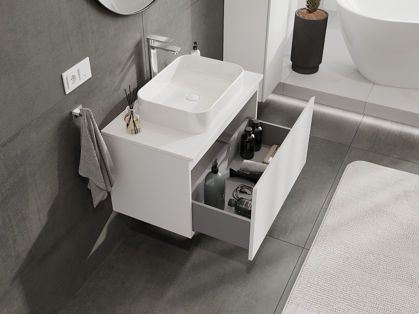 Mūsu modulārās vannas istabas mēbeles var savstarpēji kombinēt dažādās krāsu konfigurācijās, ļaujot pilnīgu personalizāciju. Var izvēlēties gan izskatu, gan atsevišķu elementu funkcijas, kas ļauj pielāgot mēbeles savām stilistiskajām un lietotāju vēlmēm.
