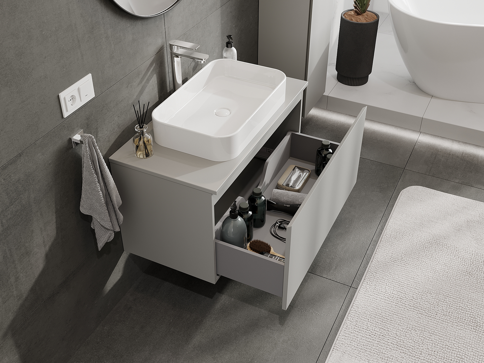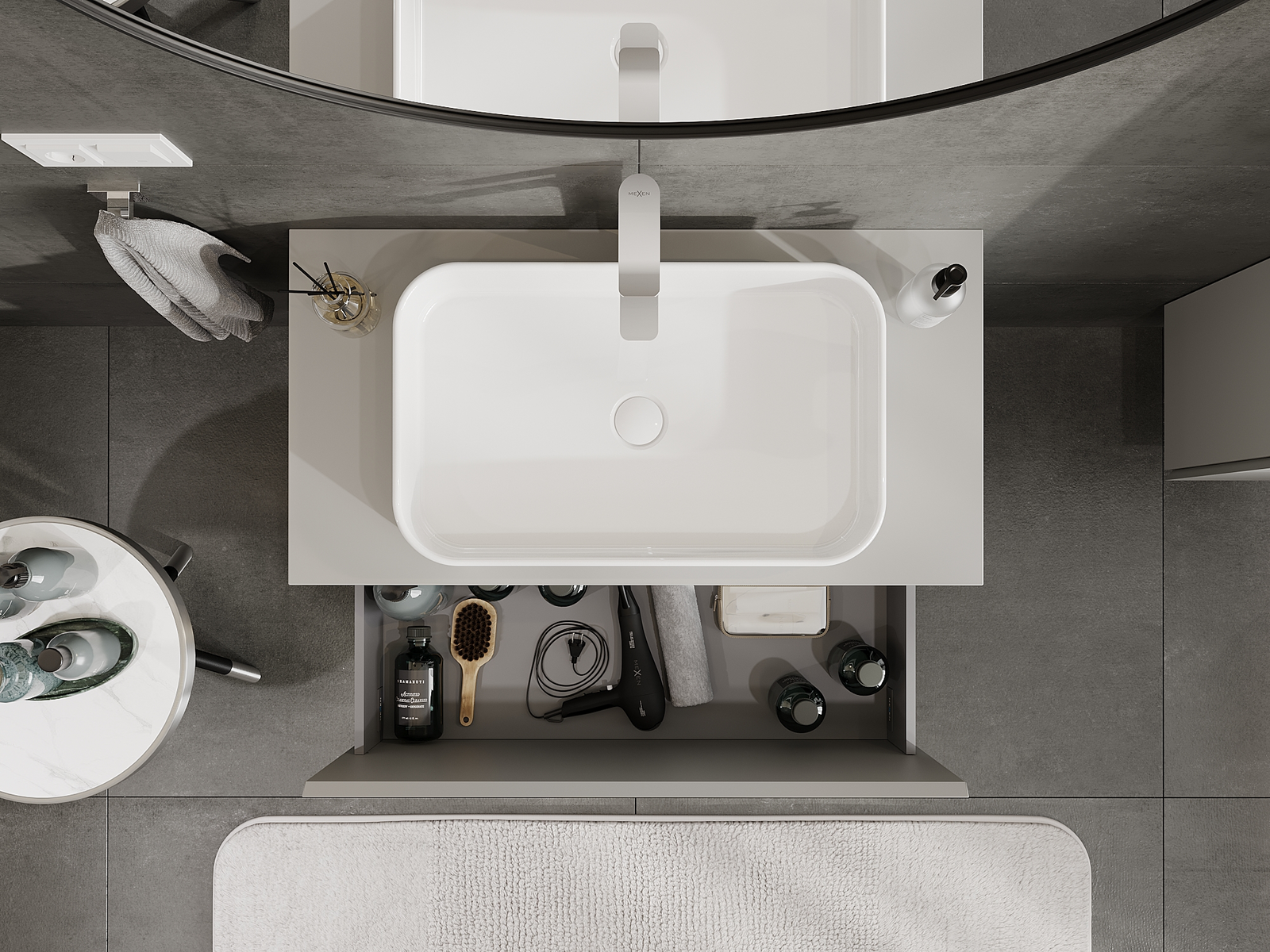 Mexen Orio vannas istabas skapītis zem izlietnes 90 cm, 1 atvilktne, pelēks matēts - 91A10-09047-1-BF62