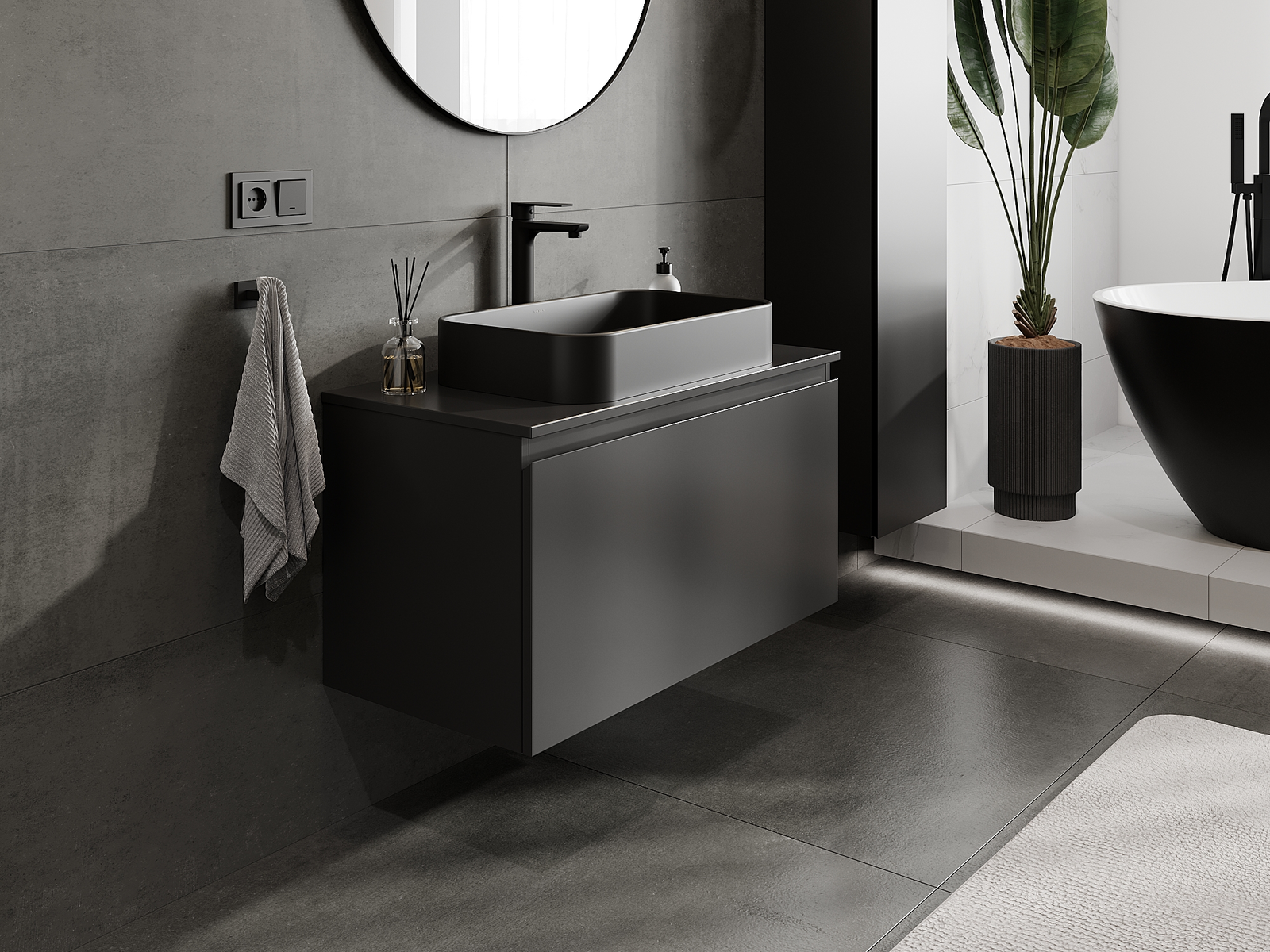 Mexen Orio Vannas istabas skapītis zem izlietnes 90 cm, 1 atvilktne, melns matēts - 91A10-09047-1-BF71