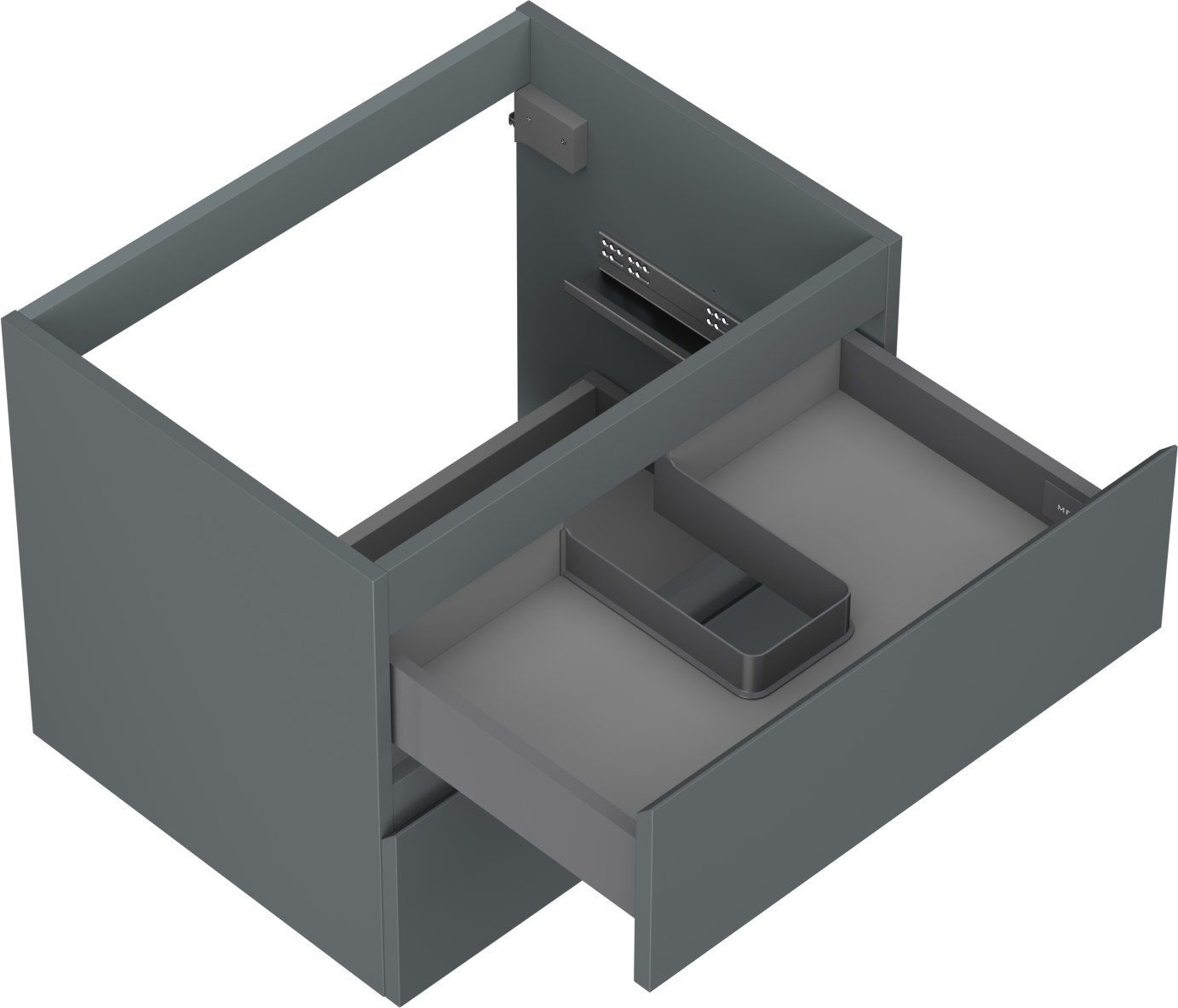 Izgriezums atvilktnē ir veidots tā, lai tajā varētu ietilpt sifons, kas ir nepieciešams izlietņu uzstādīšanā. Pateicoties tam, mēbele var tikt pilnībā funkcionāli uzstādīta, neatstājot ievērojamu vietu atvilktnē instalācijai.