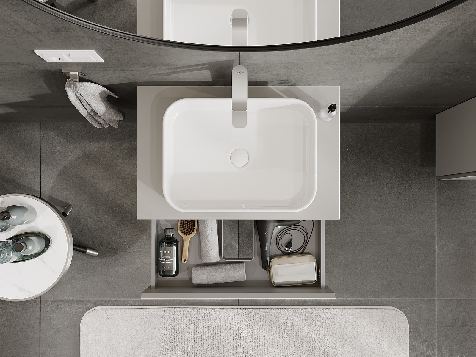 Izgriezums atvilktnē ir veidots tā, lai tajā varētu ietilpt sifons, kas ir nepieciešams izlietņu uzstādīšanā. Pateicoties tam, mēbele var tikt pilnībā funkcionāli uzstādīta, neatstājot ievērojamu vietu atvilktnē instalācijai.