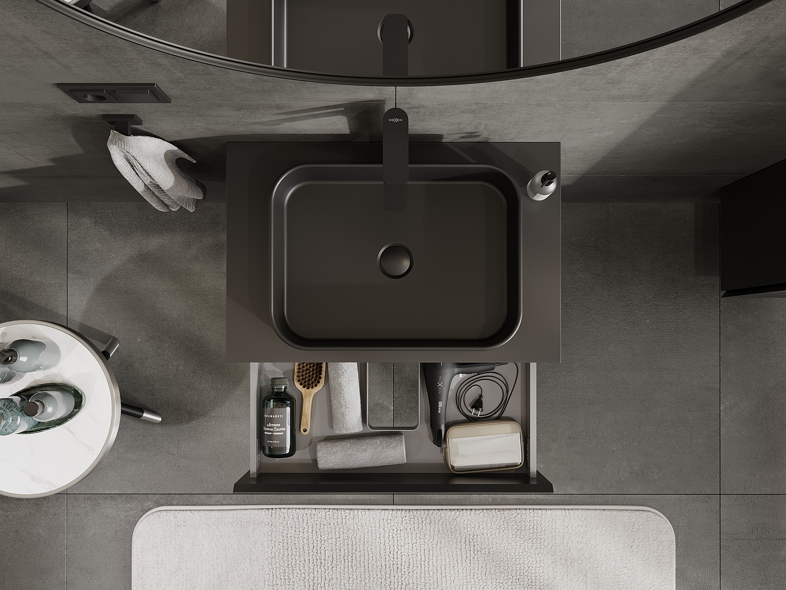 Mexen Orio vannas istabas skapītis zem izlietnes 70 cm, 2 atvilktnes, melns matēts - 91A10-07047-2-BFF71