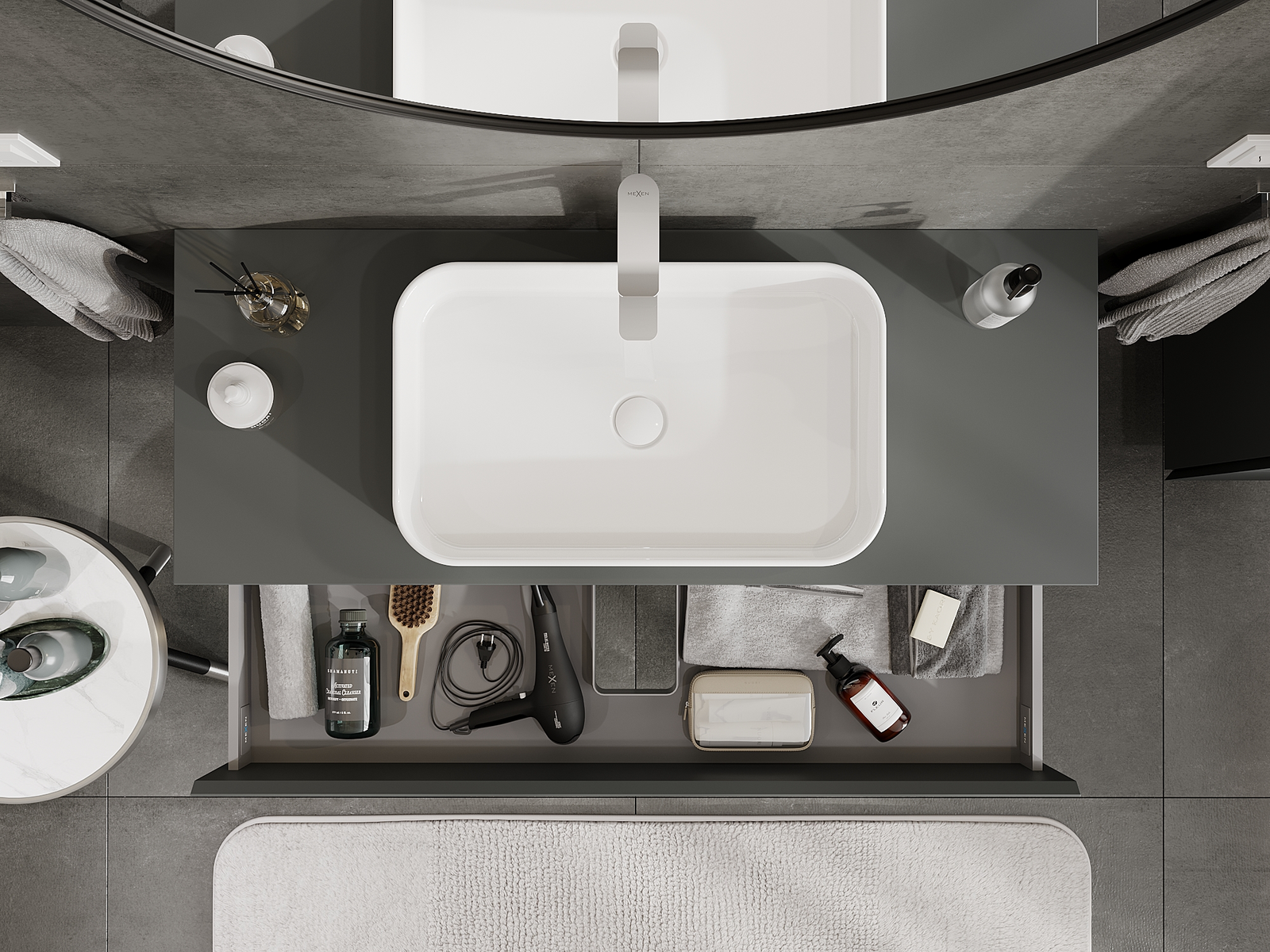 Mexen Orio vannas istabas skapītis zem izlietnes 120 cm, 2 atvilktnes, matēts grafīts - 91A10-12047-2-BFF66