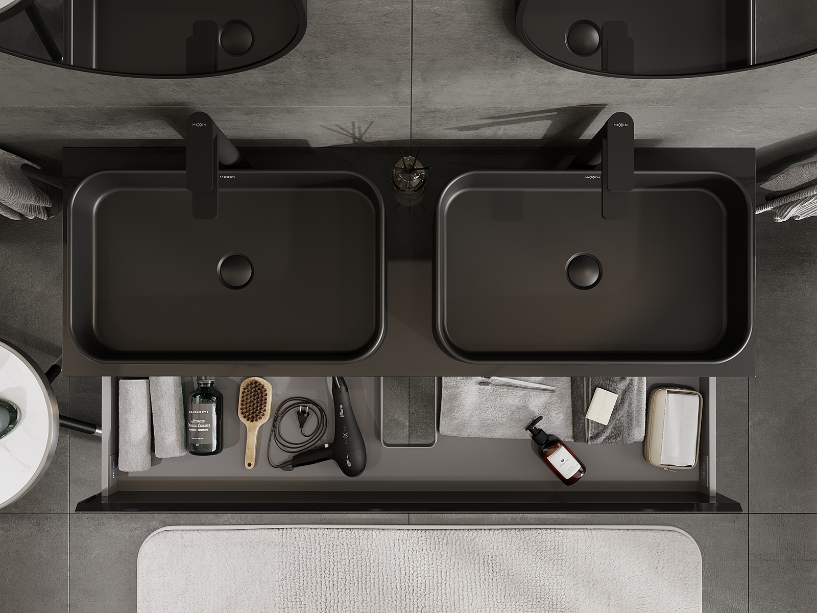 Mexen Orio vannas istabas skapītis zem izlietnes 140 cm, 2 atvilktnes, melns spīdīgs - 91A10-14047-2-BFF70