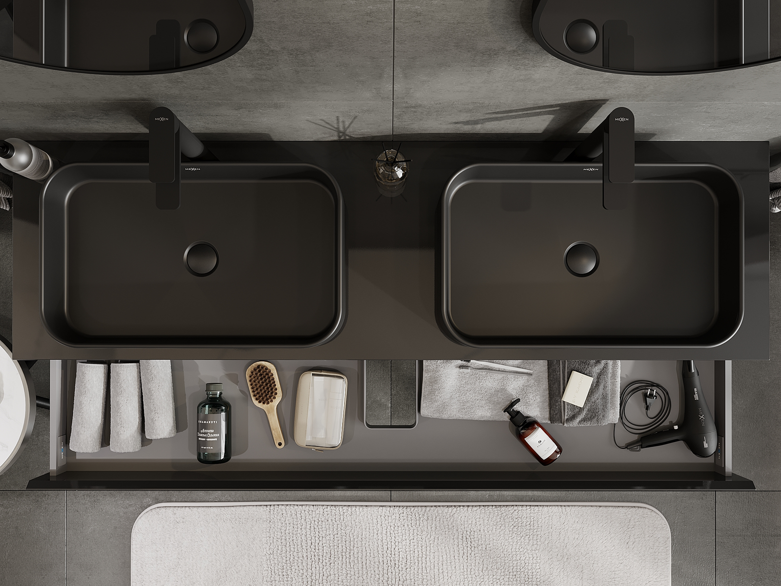 Mexen Orio Vannas istabas skapītis zem izlietnes 160 cm, 2 atvilktnes, melns spīdīgs - 91A10-16047-2-BFF70