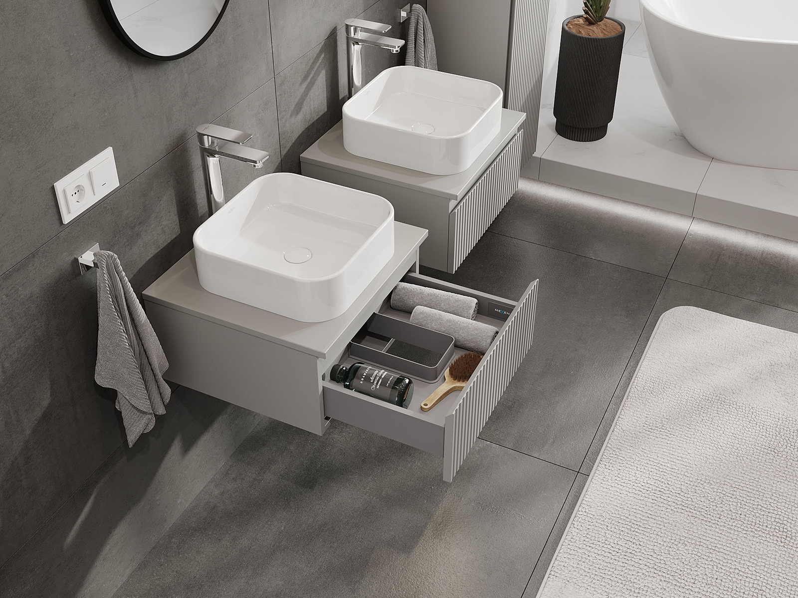 Mexen Rivel vannas istabas skapītis zem izlietnes 50 cm, 1 atvilktne, rievots, pelēks mats - 91A20-05023-1-BF62