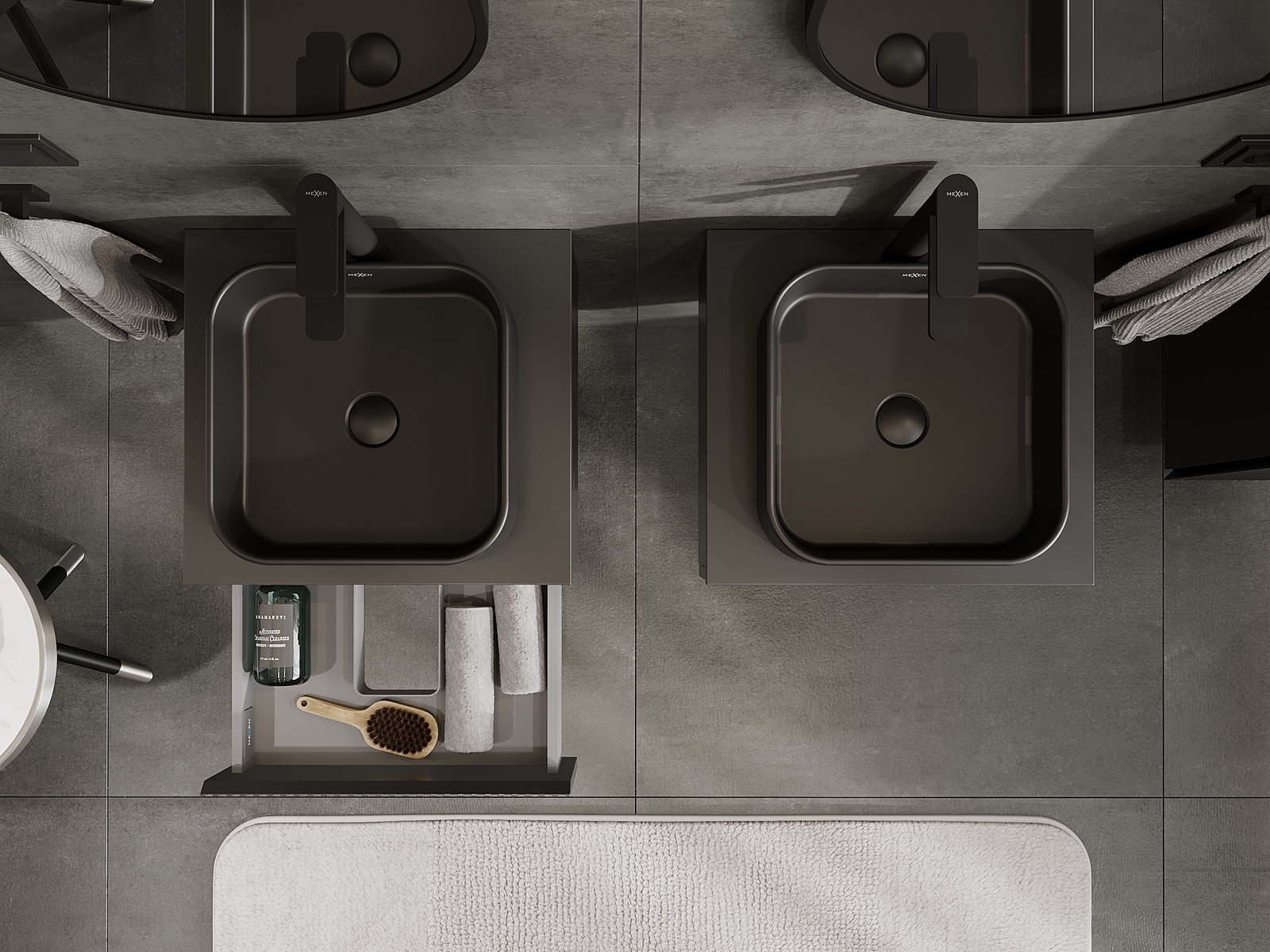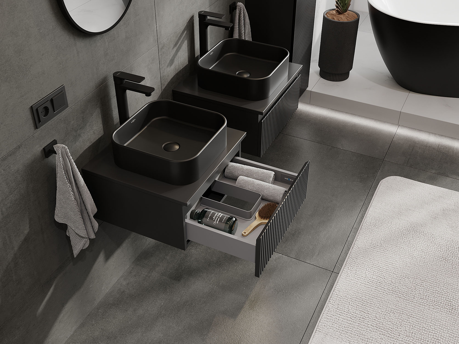 Mexen Rivel vannas istabas skapītis zem izlietnes 50 cm, 1 atvilktne, rievots, melns matēts - 91A20-05023-1-BF71