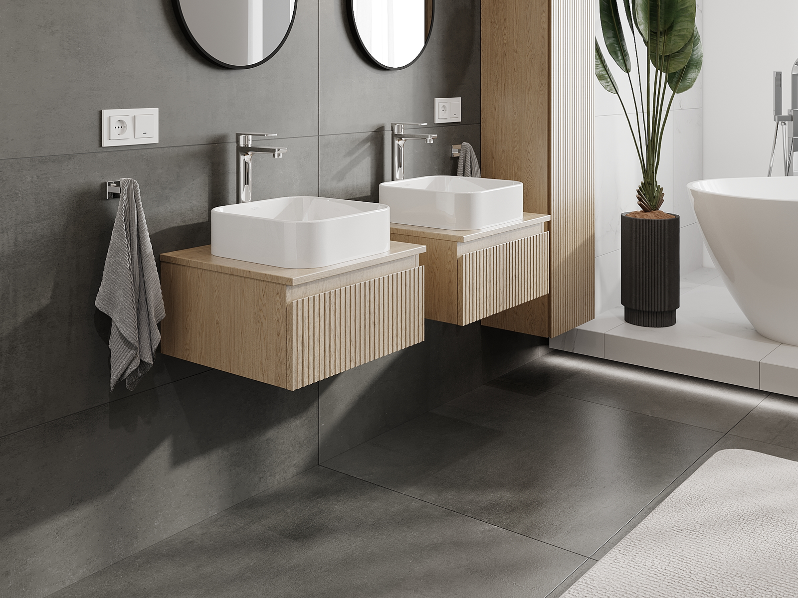 Mūsu modulārās vannas istabas mēbeles var savstarpēji kombinēt dažādās krāsu konfigurācijās, ļaujot pilnīgu personalizāciju. Var izvēlēties gan izskatu, gan atsevišķu elementu funkcijas, kas ļauj pielāgot mēbeles savām stilistiskajām un lietotāju vēlmēm.