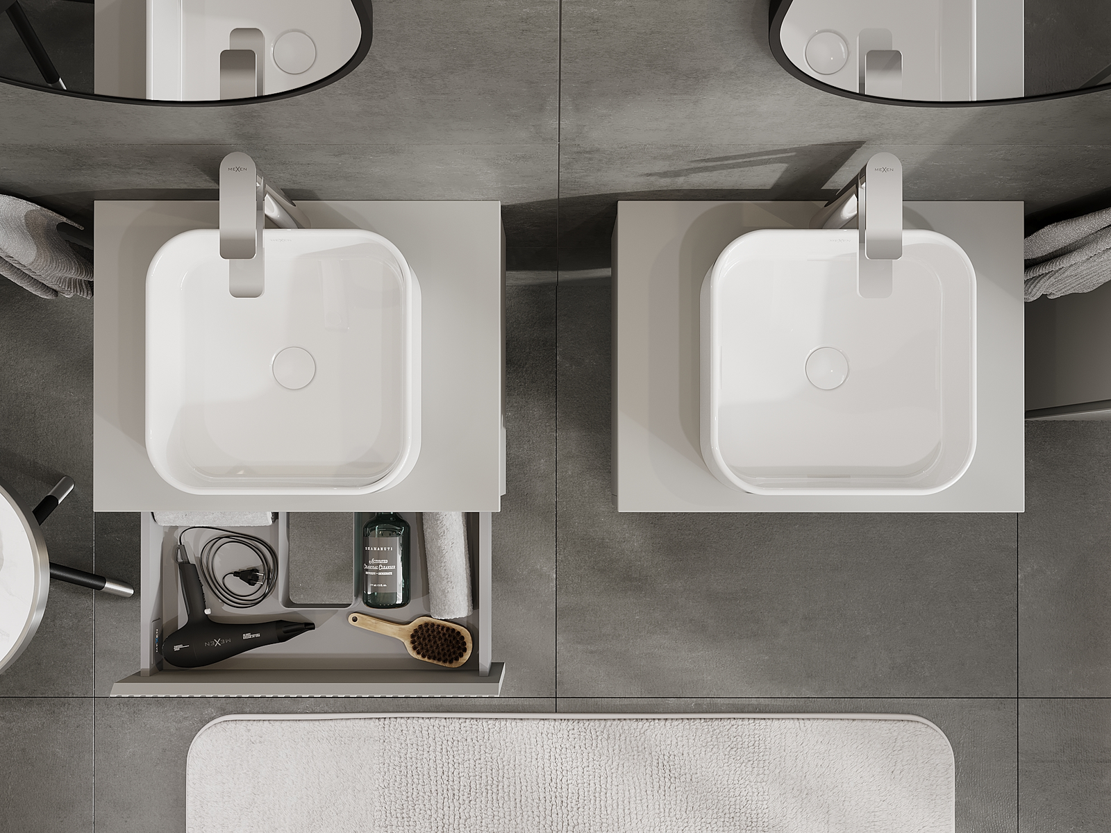 Mexen Rivel vannas istabas skapis zem izlietnes 60 cm, 1 atvilktne, rievots, pelēks matēts - 91A20-06023-1-BF62