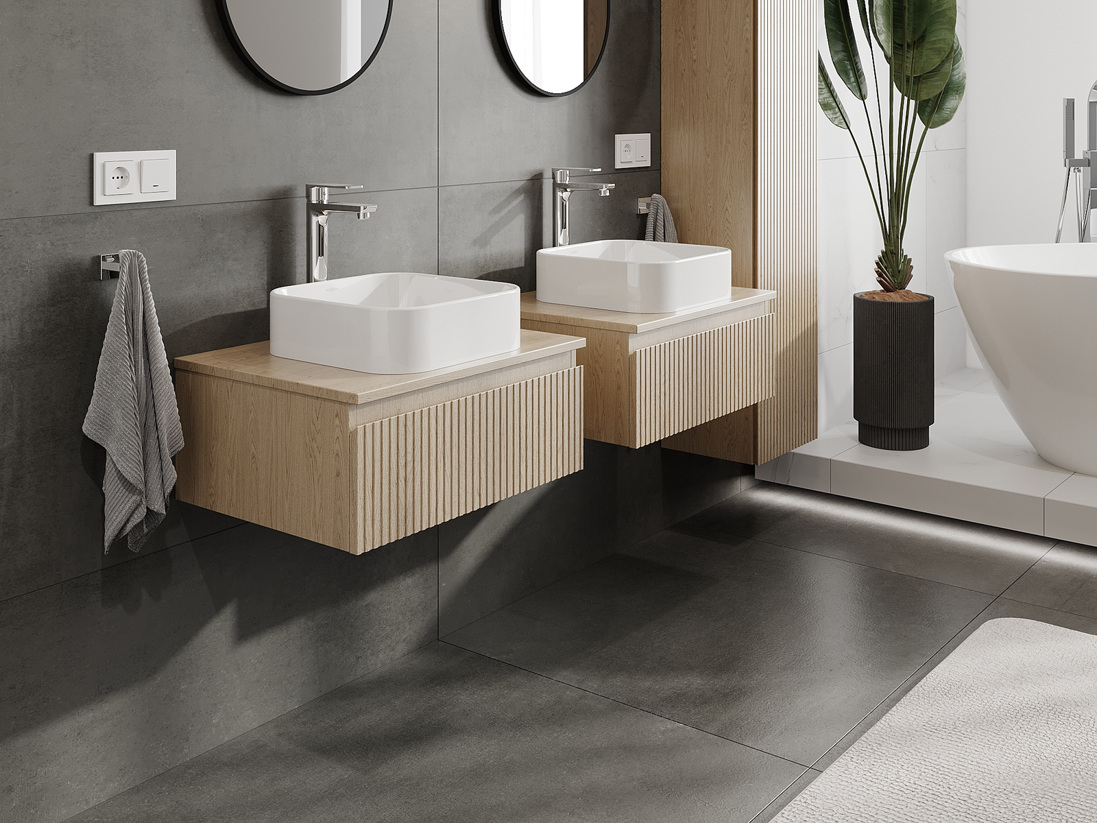 Mūsu modulārās vannas istabas mēbeles var savstarpēji kombinēt dažādās krāsu konfigurācijās, ļaujot pilnīgu personalizāciju. Var izvēlēties gan izskatu, gan atsevišķu elementu funkcijas, kas ļauj pielāgot mēbeles savām stilistiskajām un lietotāju vēlmēm.
