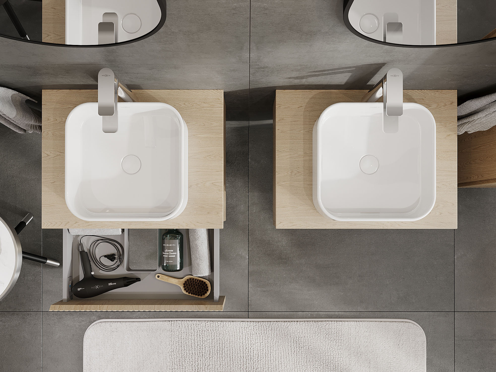 Mexen Rivel vannas istabas skapītis zem izlietnes 60 cm, 1 atvilktne, rievots, ozols - 91A20-06023-1-BF81