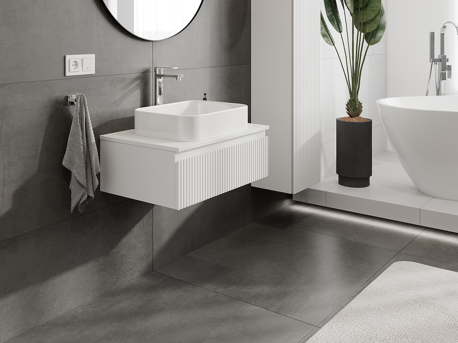 Mexen Rivel vannas istabas skapītis zem izlietnes 70 cm, 1 atvilktne, rievots, balts matēts - 91A20-07023-1-BF01