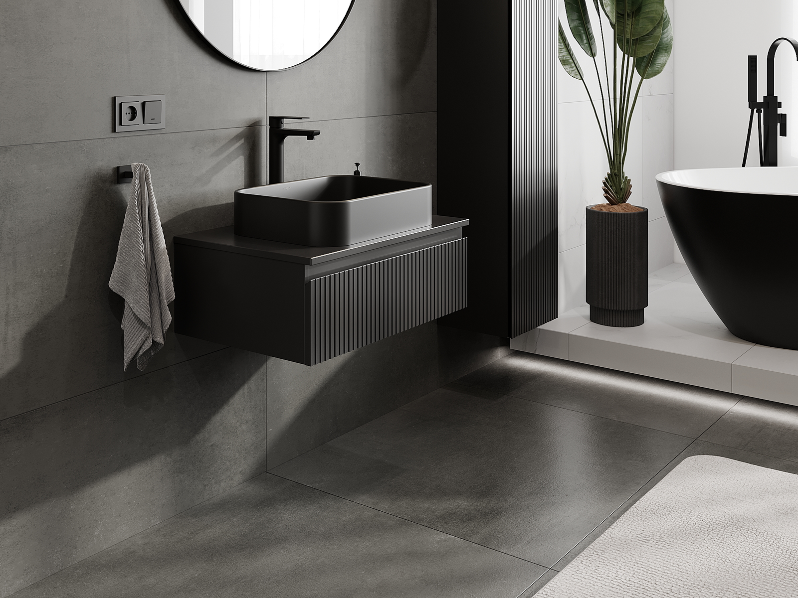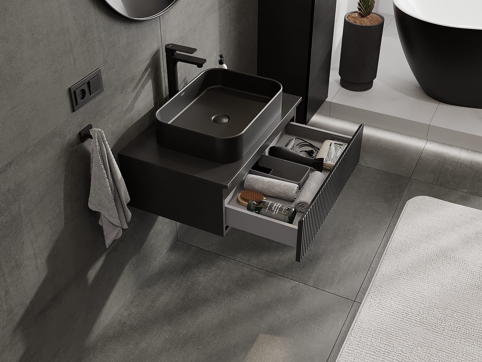 Mexen Rivel vannasistabas skapis zem izlietnes 70 cm, 1 atvilktne, rievota, grafīta matēta - 91A20-07023-1-BF71