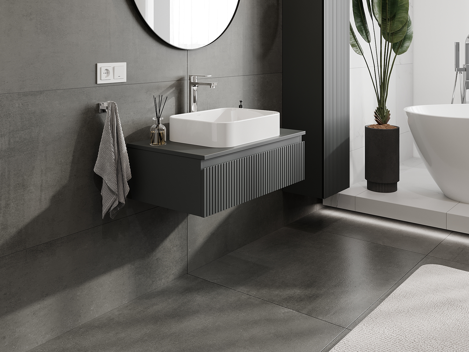 Mexen Rivel vannas istabas skapītis zem izlietnes 80 cm, 1 atvilktne, rievots, grafīts matēts - 91A20-08023-1-BF66