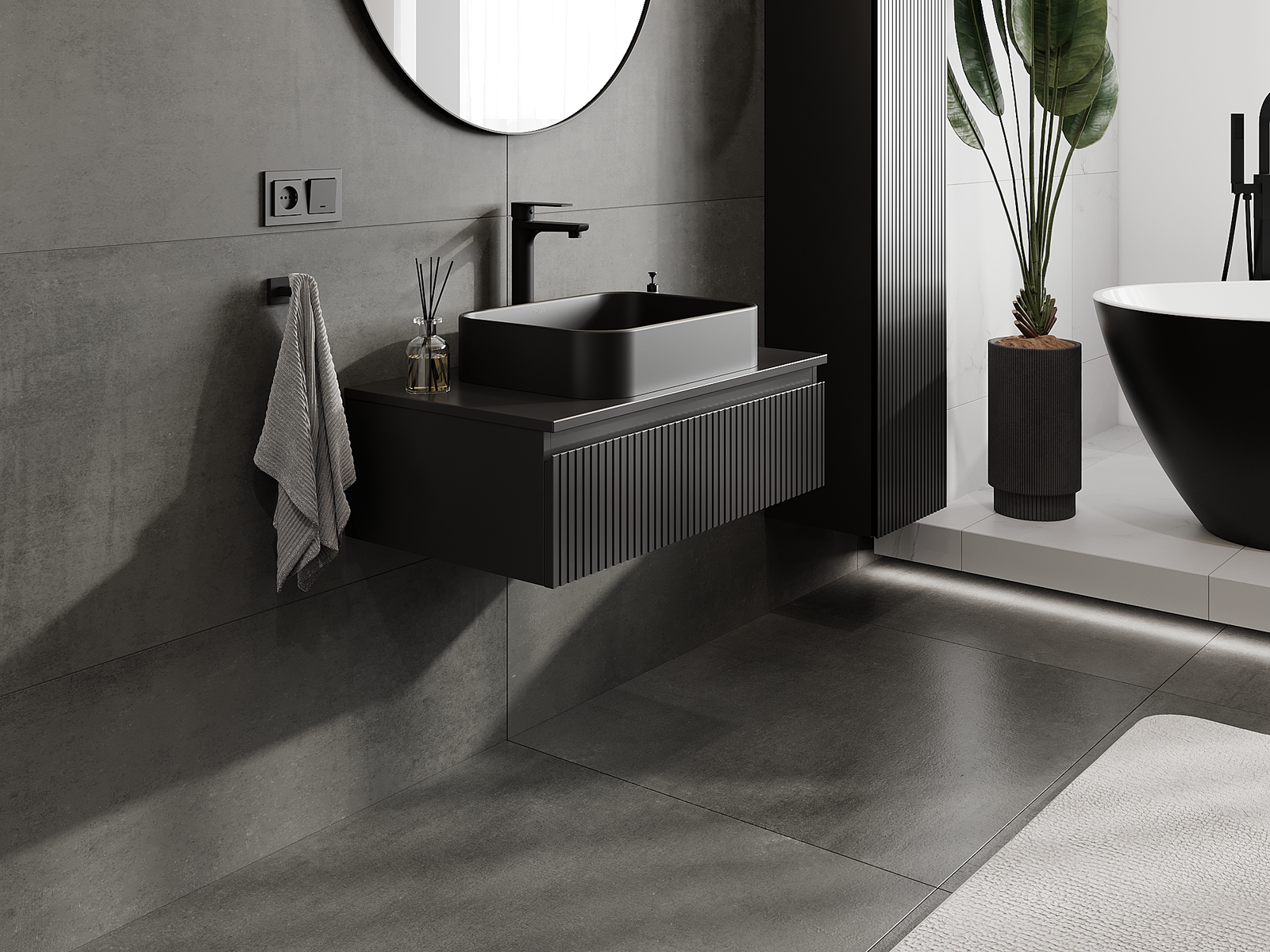 Mexen Rivel 80 cm vannas istabas izlietnes skapis, 1 atvilktne, rievots, melns matēts - 91A20-08023-1-BF71