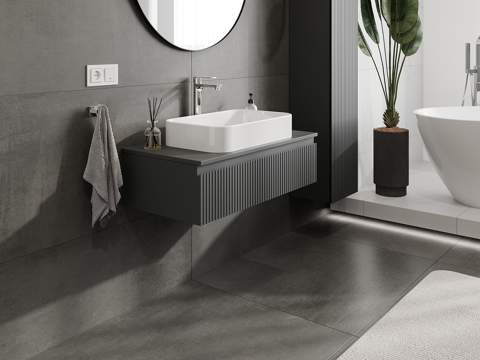 Mexen Rivel vannas istabas skapītis zem izlietnes 90 cm, 1 atvilktne, rievots, grafīta matējums - 91A20-09023-1-BF66