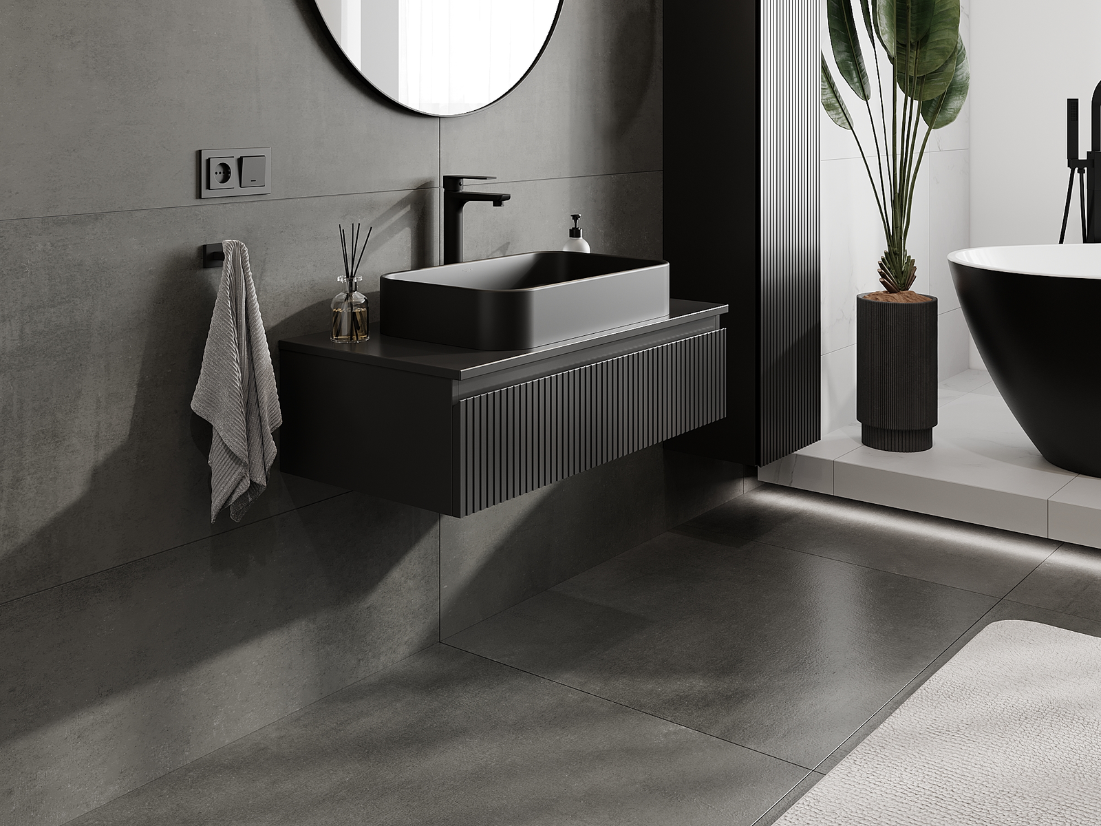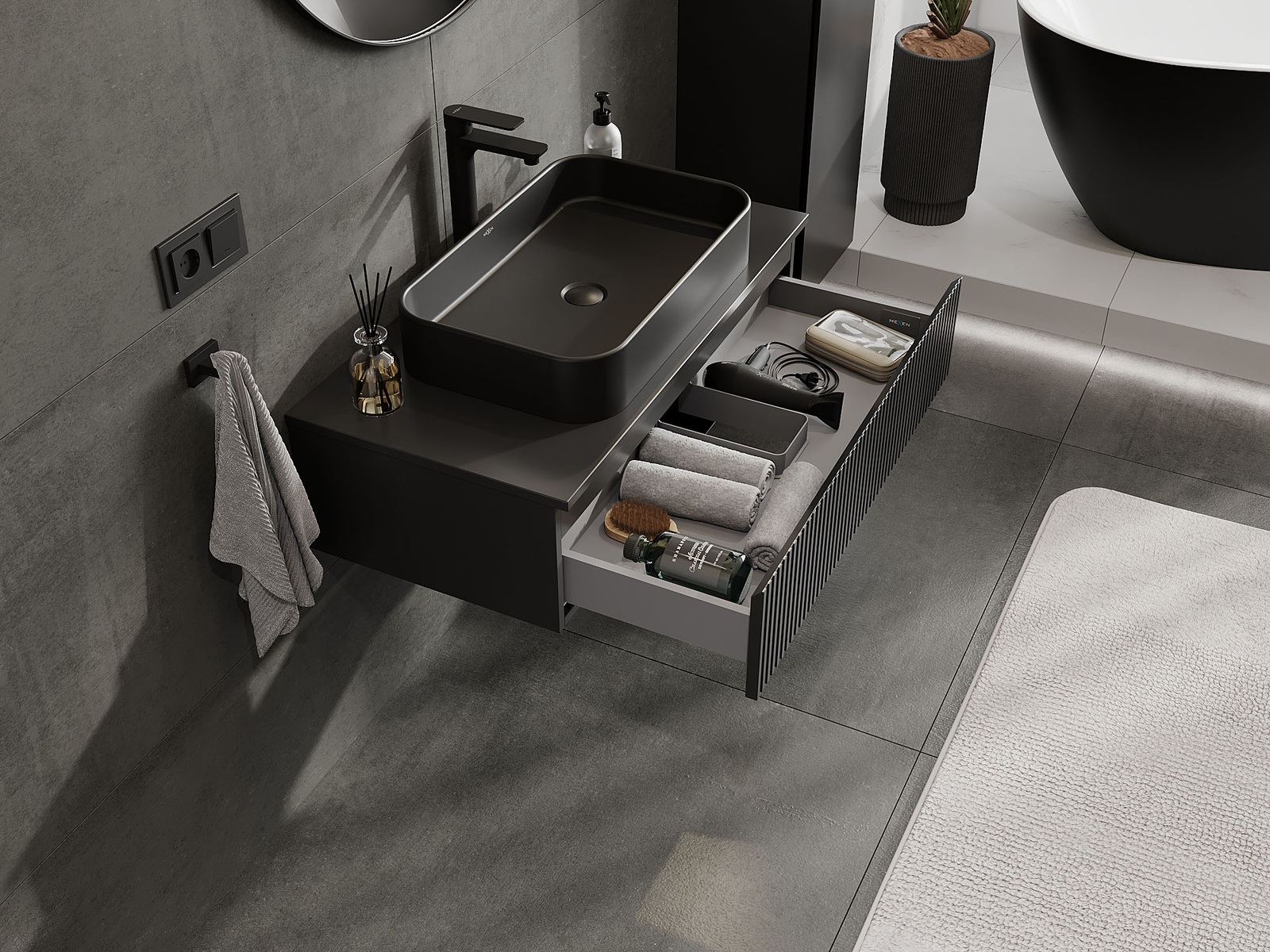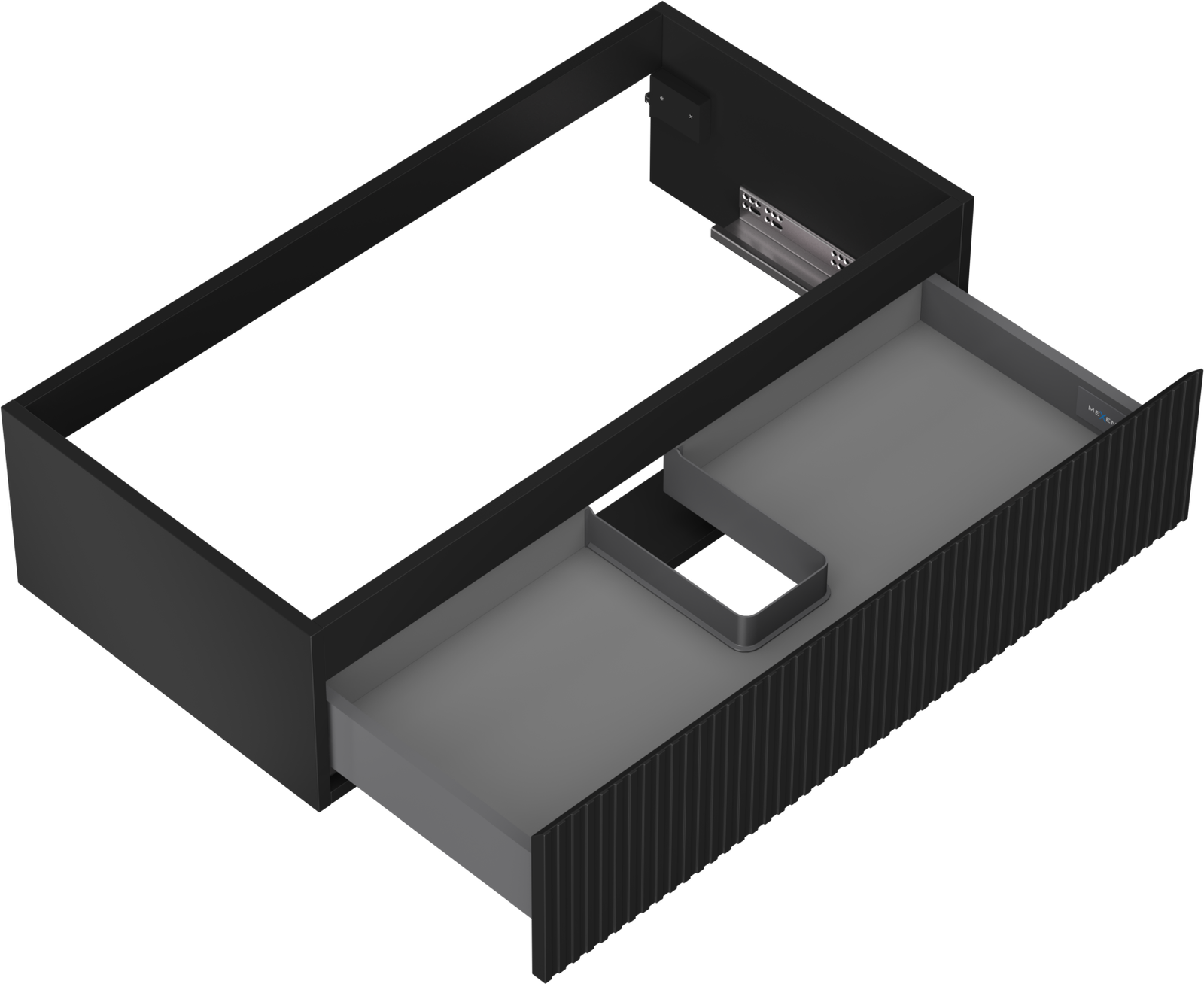 Mexen Rivel vannas istabas skapis zem izlietnes 90 cm, 1 atvilktne, rievota, melna matēta - 91A20-09023-1-BF71