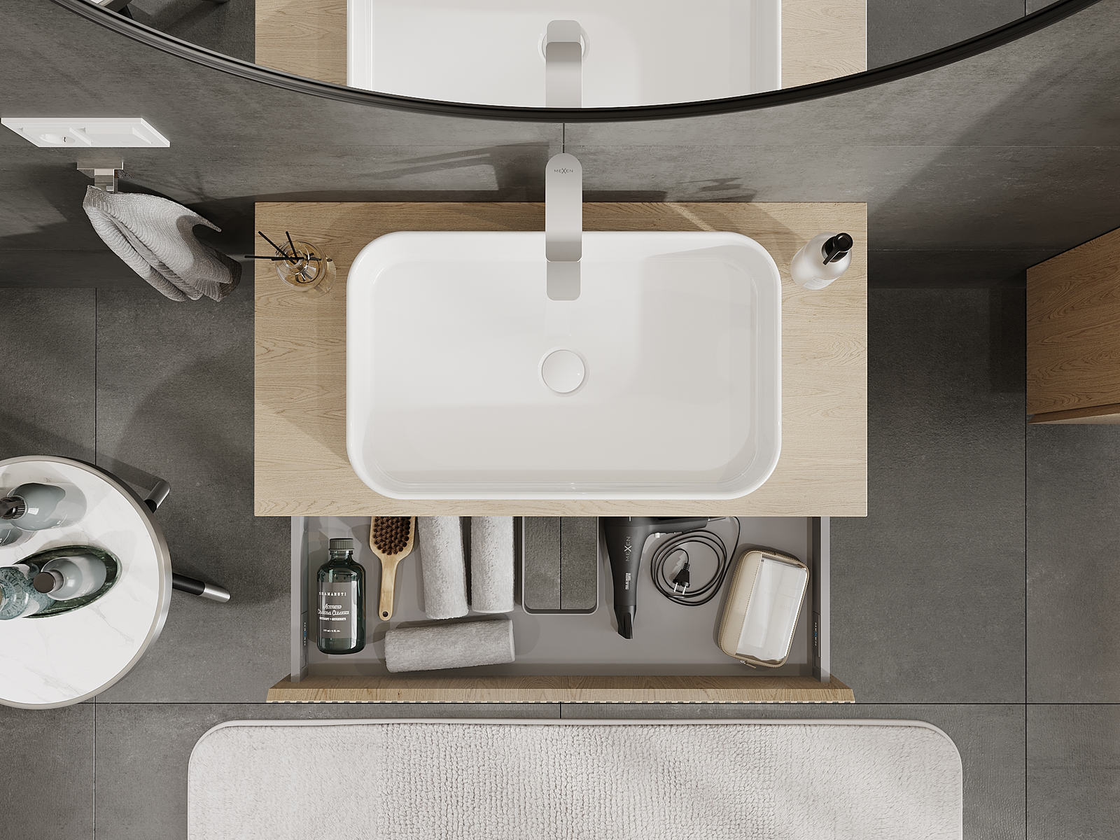 Mexen Rivel vannas istabas skapītis zem izlietnes 90 cm, 1 atvilktne, rievots, ozols - 91A20-09023-1-BF81