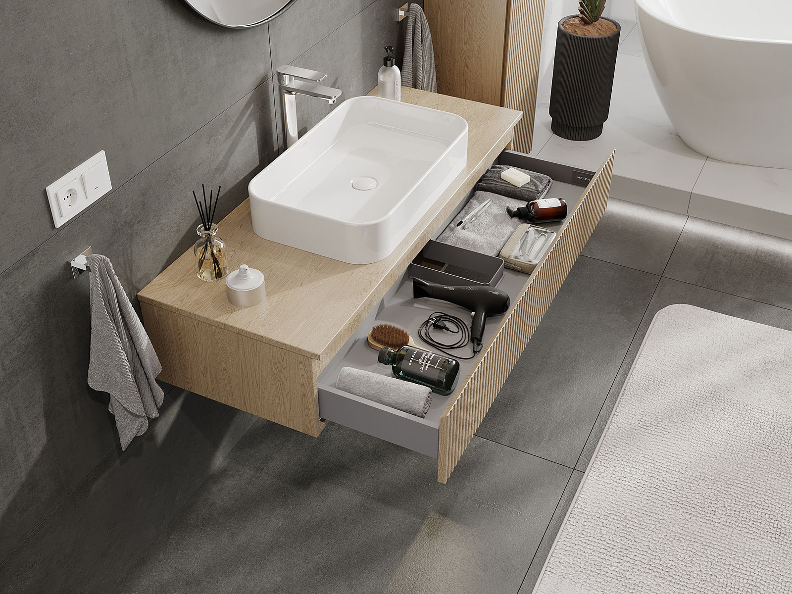Mexen Rivel vannas istabas skapis zem izlietnes 120 cm, 1 atvilktne, rievots, ozols - 91A20-12023-1-BF81