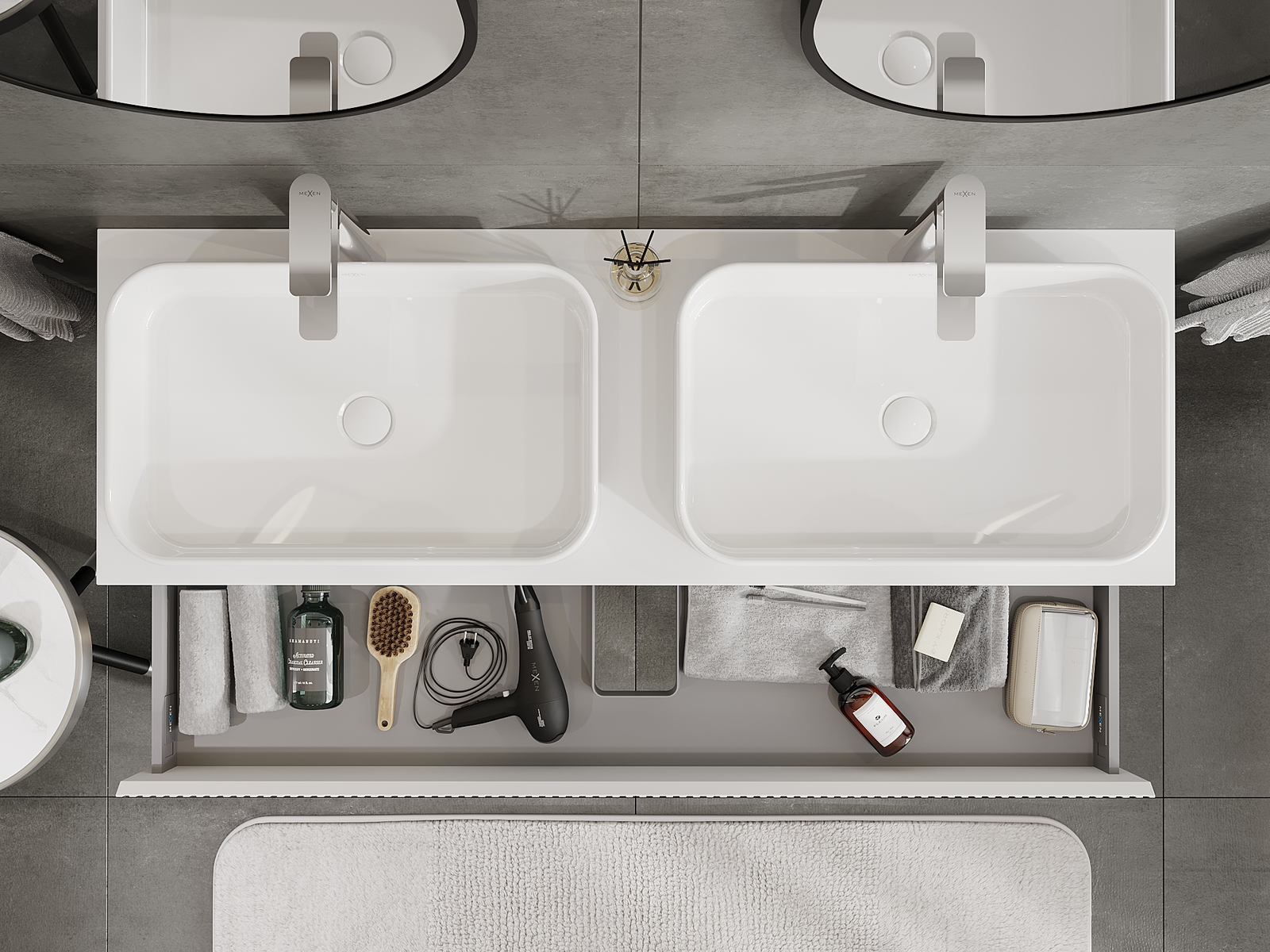 Izgriezums atvilktnē ir veidots tā, lai tajā varētu ietilpt sifons, kas ir nepieciešams izlietņu uzstādīšanā. Pateicoties tam, mēbele var tikt pilnībā funkcionāli uzstādīta, neatstājot ievērojamu vietu atvilktnē instalācijai.