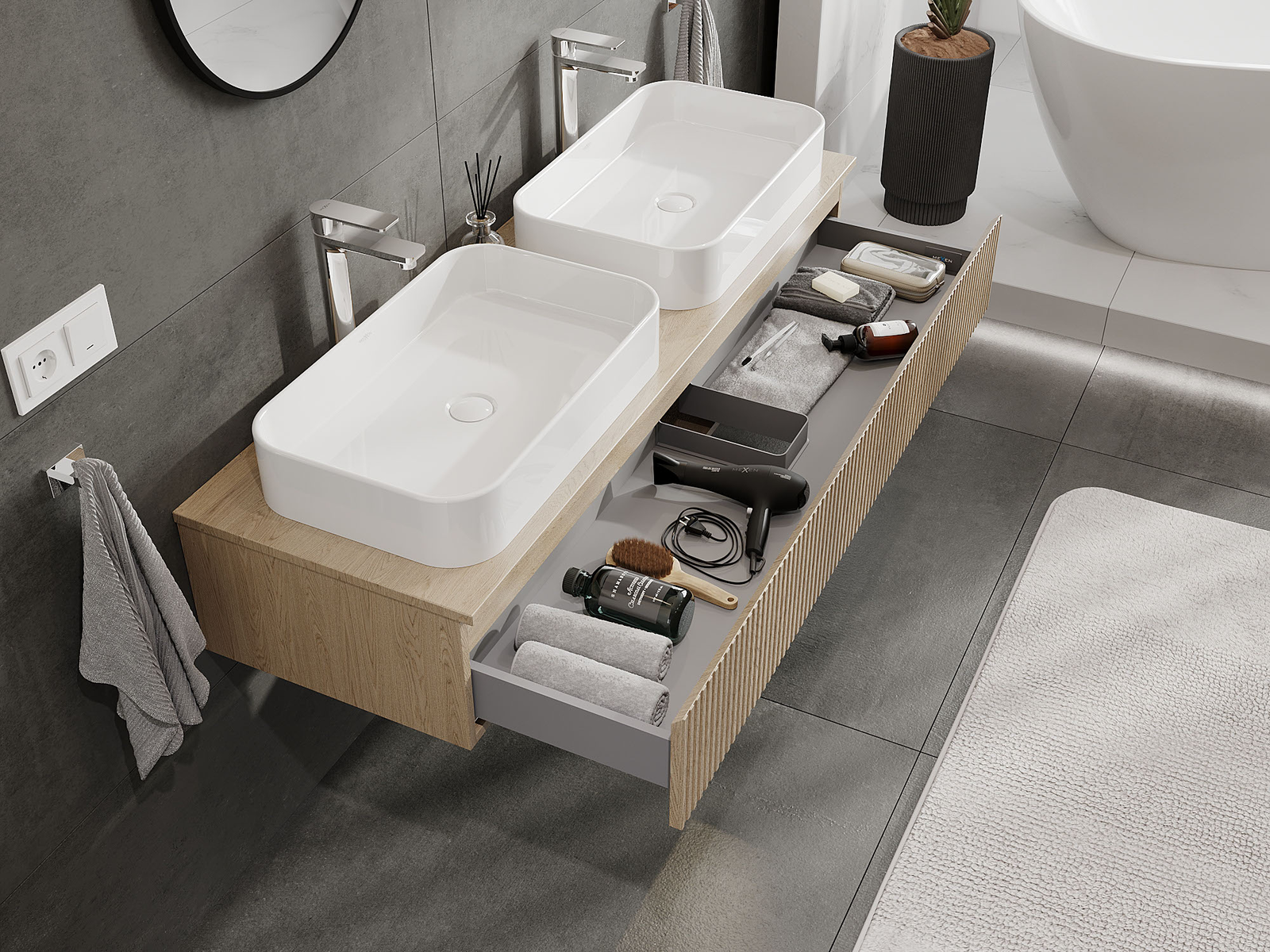 Mexen Rivel vannas istabas skapītis zem izlietnes 140 cm, 1 atvilktne, rievots, ozols - 91A20-14023-1-BF81