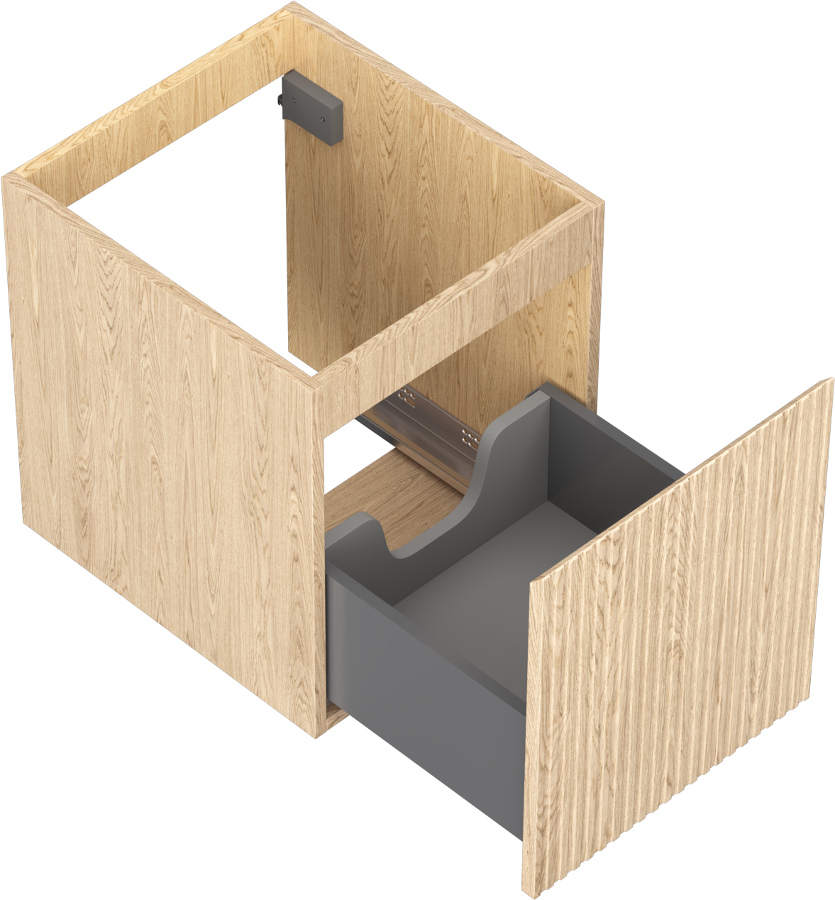 Izgriezums atvilktnē ir veidots tā, lai tajā varētu ietilpt sifons, kas ir nepieciešams izlietņu uzstādīšanā. Pateicoties tam, mēbele var tikt pilnībā funkcionāli uzstādīta, neatstājot ievērojamu vietu atvilktnē instalācijai.