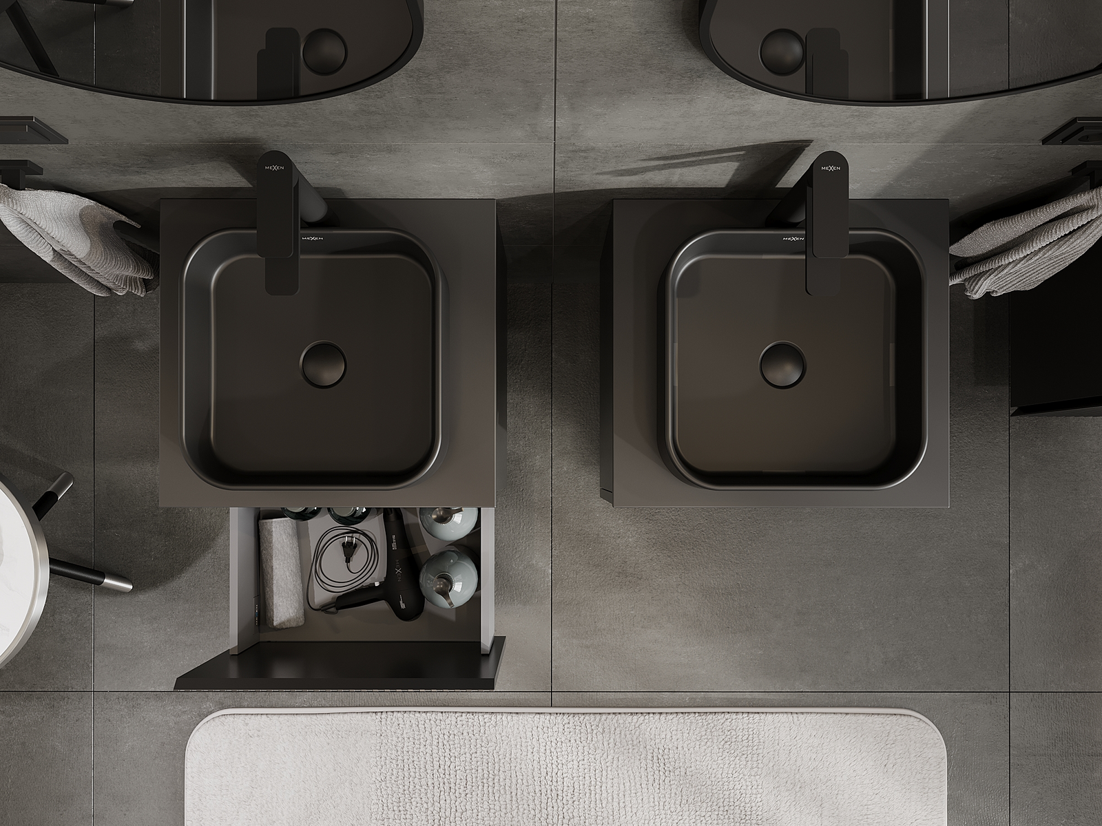 Mexen Rivel 50 cm vannas istabas skapītis zem izlietnes, 1 atvilktne, rievots, melns matēts - 91A20-05047-1-BF71