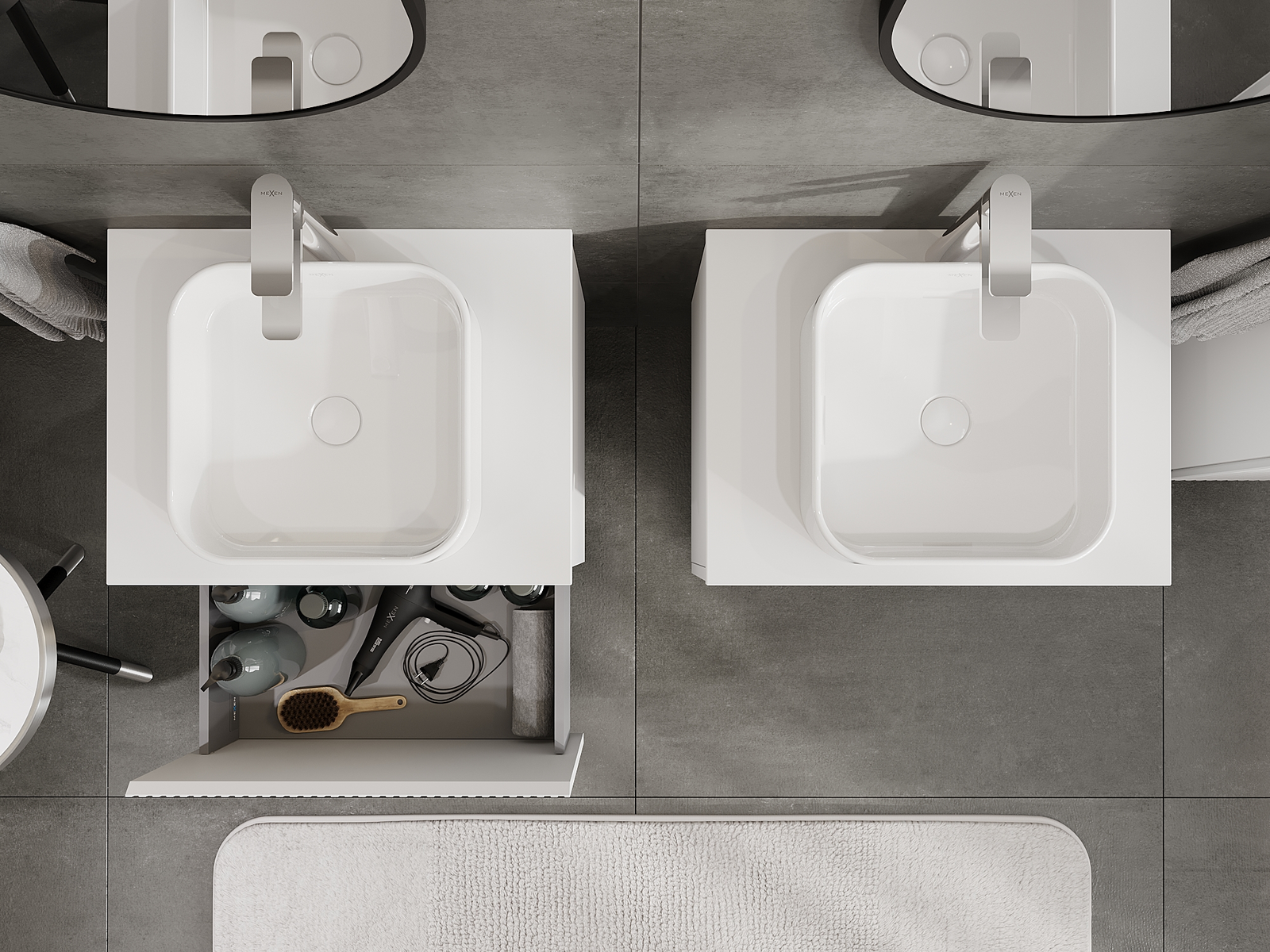 Mexen Rivel vannas istabas skapītis zem izlietnes 60 cm, 1 atvilktne, rievojumā, balts mats - 91A20-06047-1-BF01