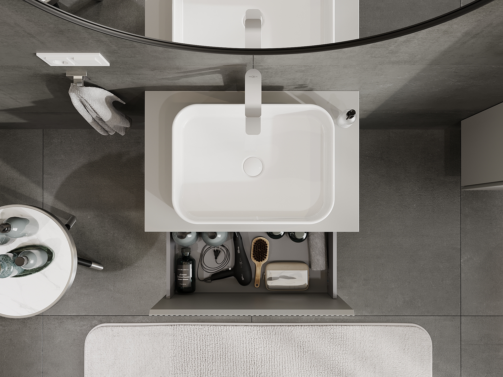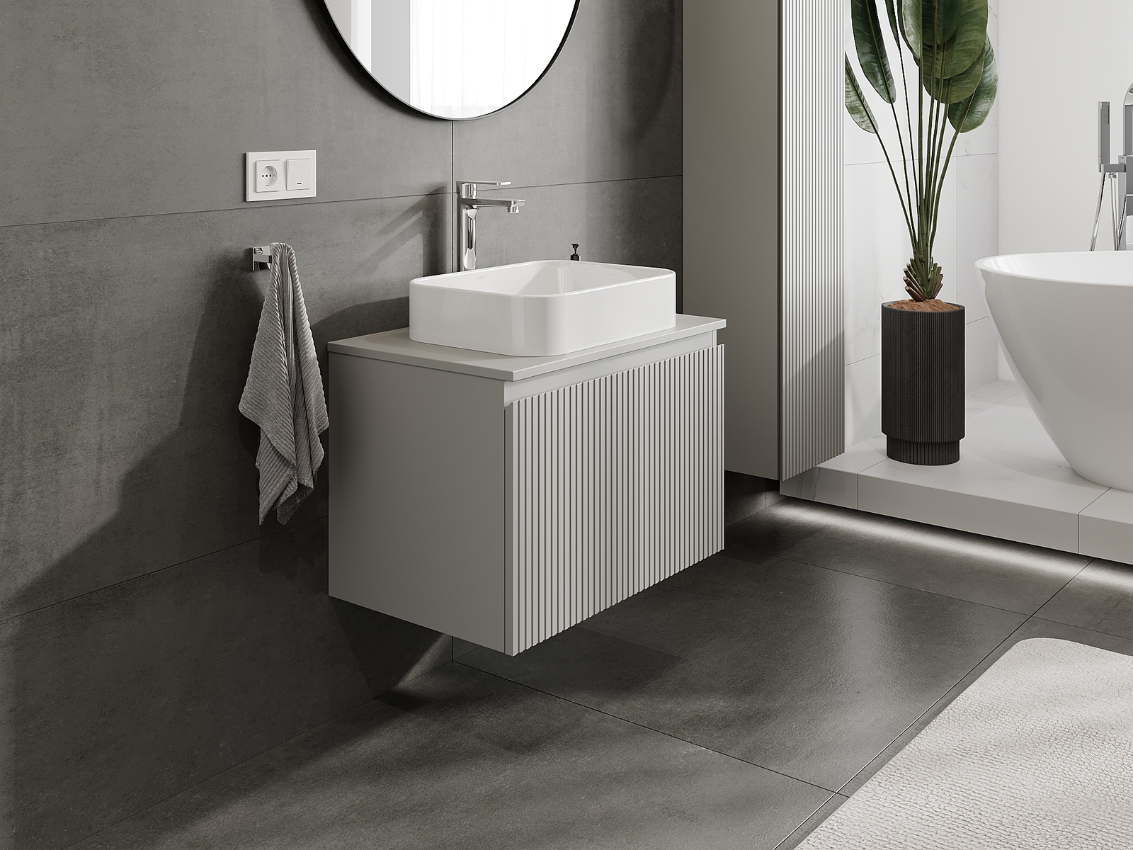 Mexen Rivel vannas istabas skapītis zem izlietnes 70 cm, 1 atvilktne, rievota, pelēks matēts - 91A20-07047-1-BF62