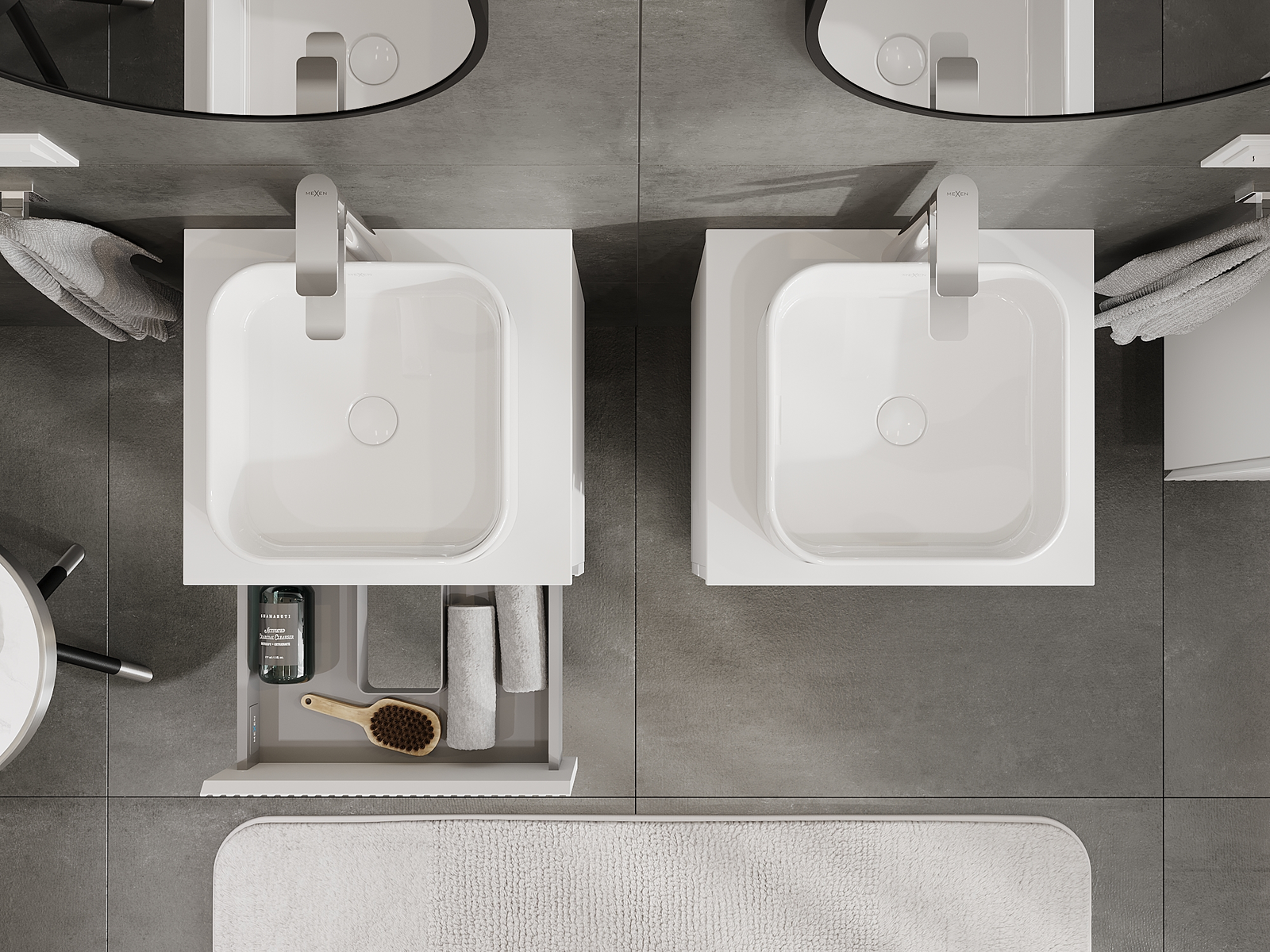 Mexen Rivel vannas istabas skapītis zem izlietnes 50 cm, 2 atvilktnes, rievots, balts matēts - 91A20-05047-2-BFF01