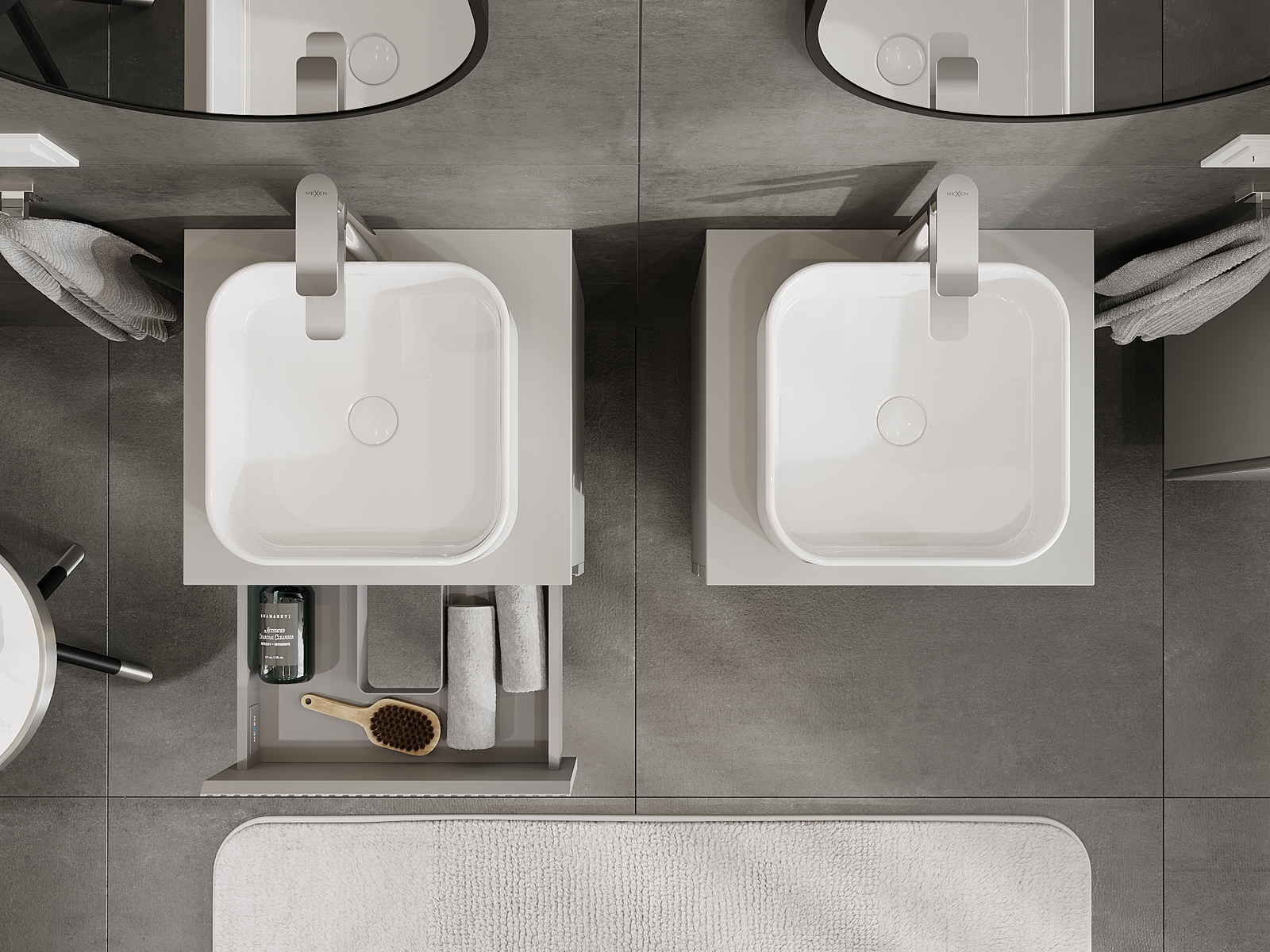 Mexen Rivel vannas istabas skapītis zem izlietnes 50 cm, 2 atvilktnes, rievots, pelēks matēts - 91A20-05047-2-BFF62