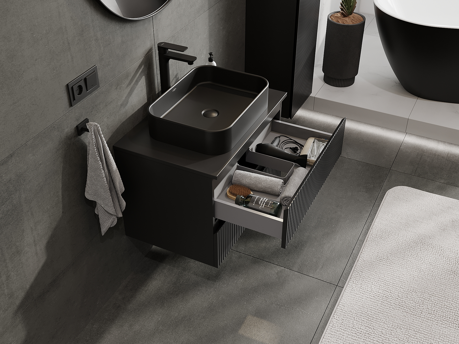 Skapja korpuss tiek piegādāts pilnībā samontēts, kas nozīmē maksimālu ērtību un laika ietaupījumu. Jums nav jātērē stundas mēbeļu salikšanai – pietiek to uzstādīt izvēlētajā vietā vannas istabā. Tas ir ideāls risinājums cilvēkiem, kuri novērtē ātru montāžu un tūlītēju efektu.