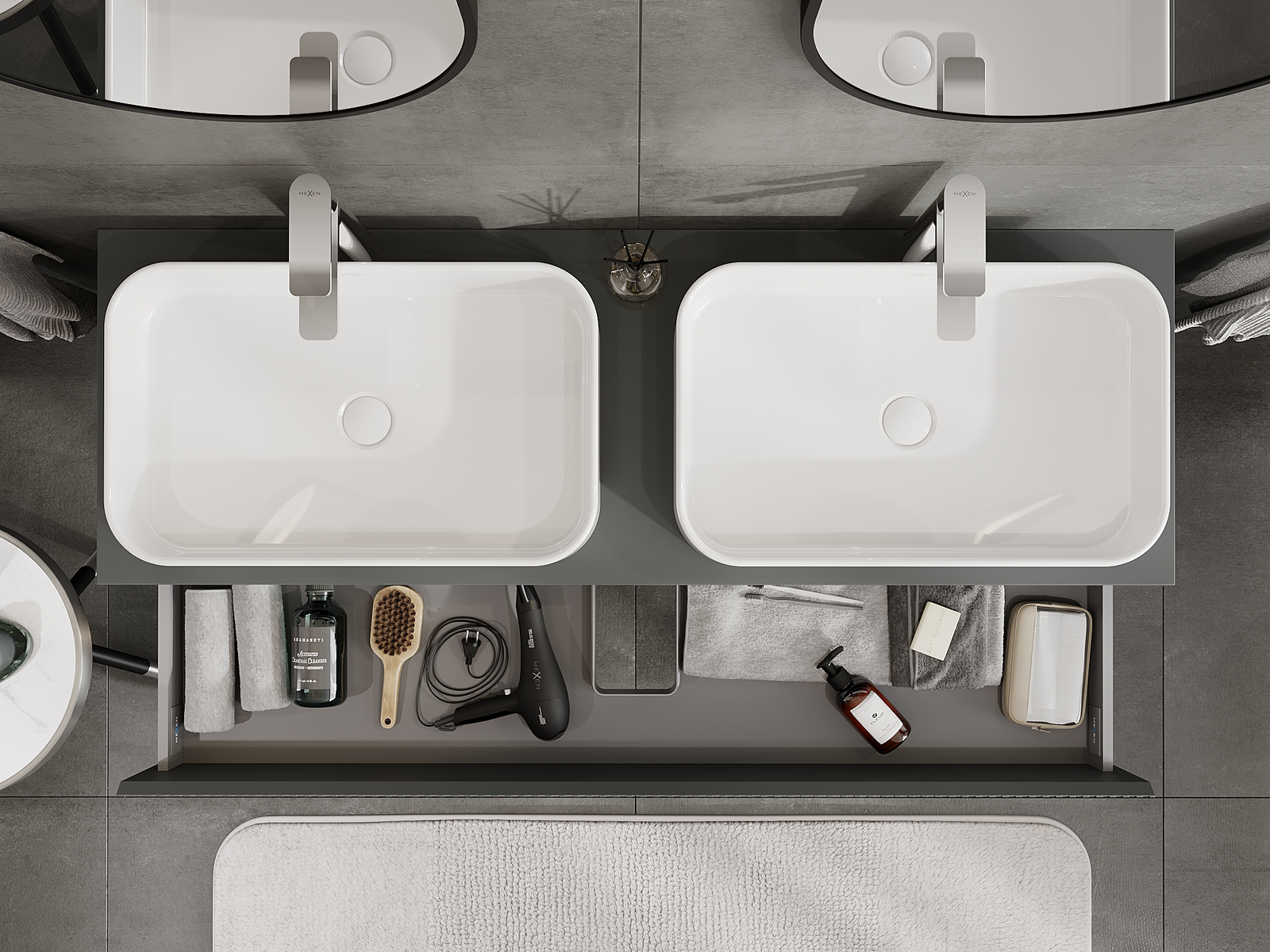 Izgriezums atvilktnē ir veidots tā, lai tajā varētu ietilpt sifons, kas ir nepieciešams izlietņu uzstādīšanā. Pateicoties tam, mēbele var tikt pilnībā funkcionāli uzstādīta, neatstājot ievērojamu vietu atvilktnē instalācijai.