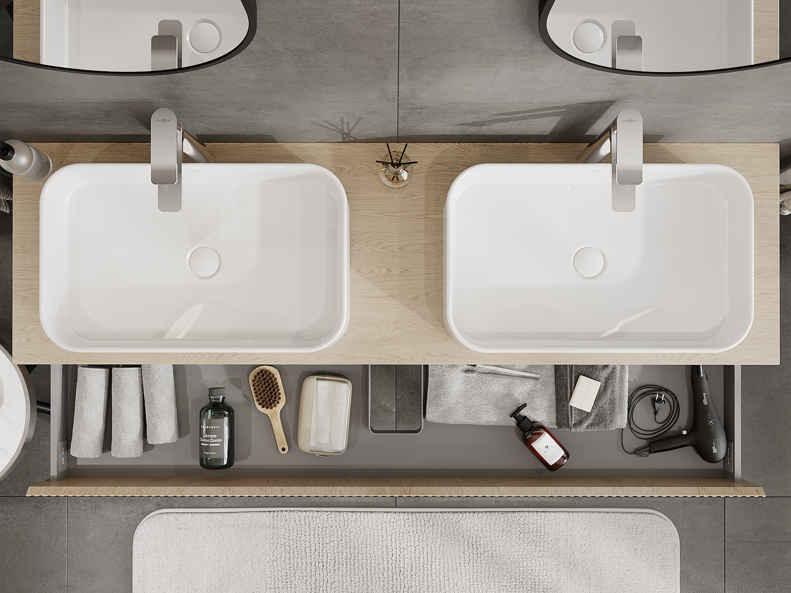 Mexen Rivel vannas istabas skapītis zem izlietnes 160 cm, 2 atvilktnes, rievots, ozols - 91A20-16047-2-BFF81