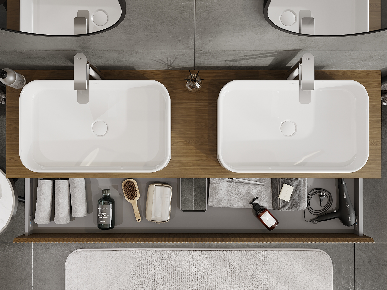 Mexen Rivel vannas istabas skapītis zem izlietnes 160 cm, 2 atvilktnes, rievots, rieksta krāsā - 91A20-16047-2-BFF86