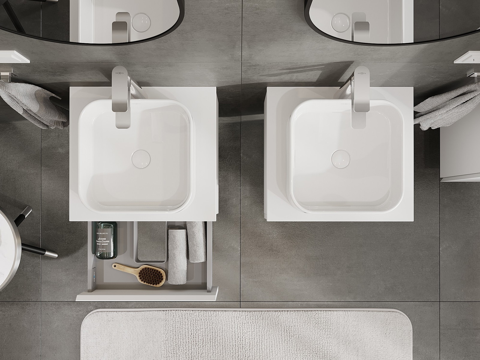 Mūsu modulārās vannas istabas mēbeles var savstarpēji kombinēt dažādās krāsu konfigurācijās, ļaujot pilnīgu personalizāciju. Var izvēlēties gan izskatu, gan atsevišķu elementu funkcijas, kas ļauj pielāgot mēbeles savām stilistiskajām un lietotāju vēlmēm.