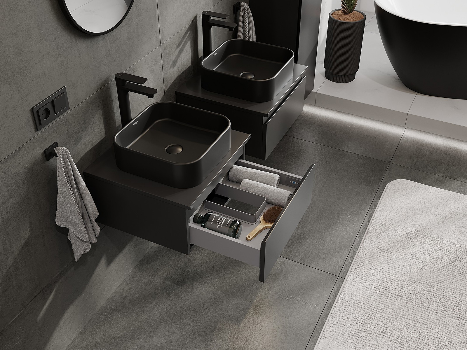 Mexen Orio vannas istabas skapītis 50 cm ar galda virsmu, 1 atvilktne, melns matēts - 91A10-05023-1-BFC71