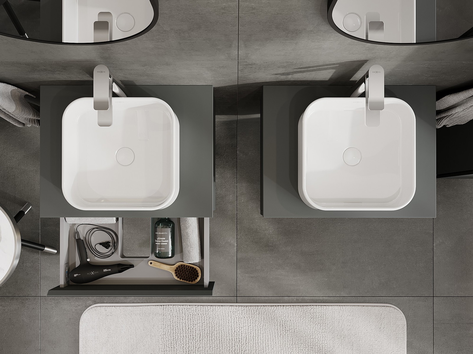 Mexen Orio vannas istabas skapītis zem izlietnes 60 cm ar darba virsmu, 1 atvilktne, matēts grafīts - 91A10-06023-1-BFC66